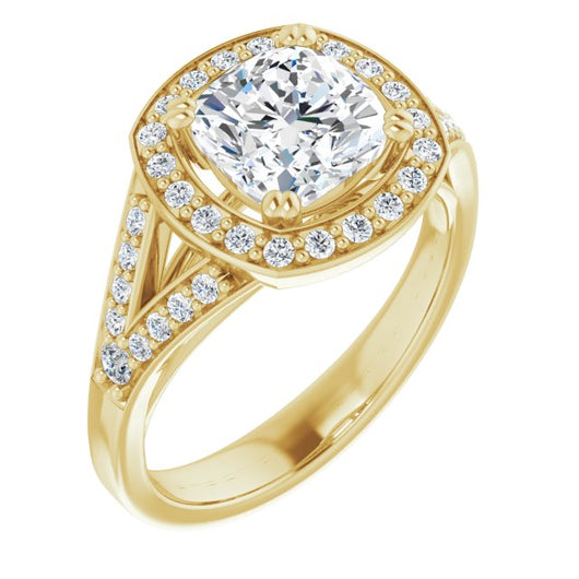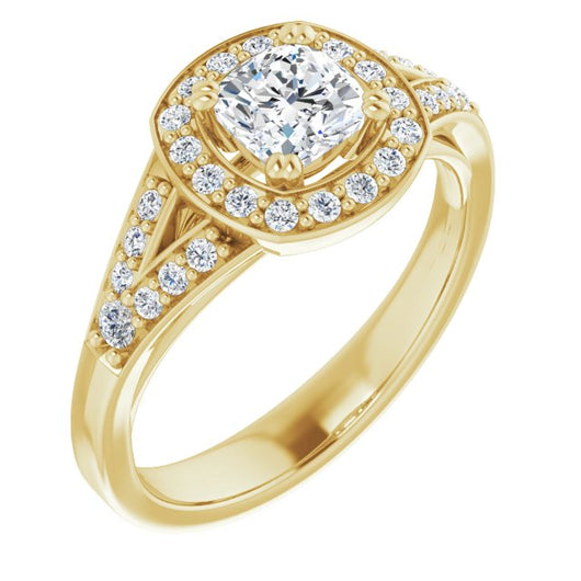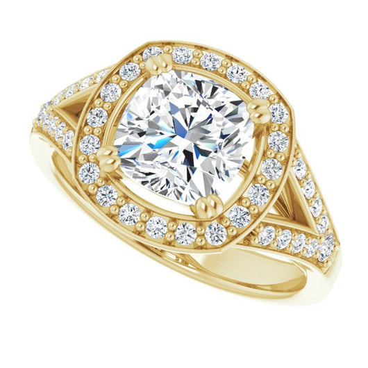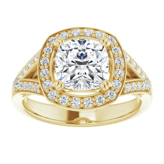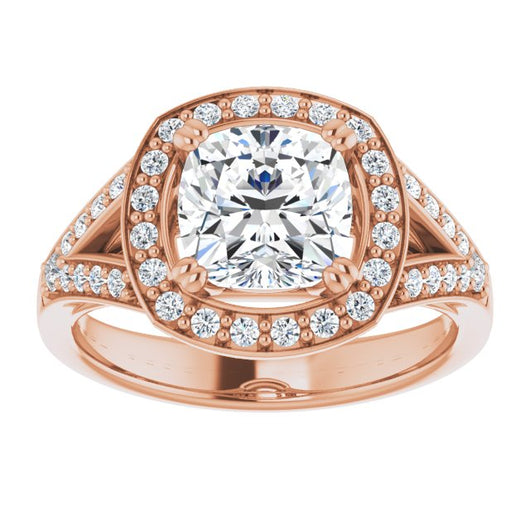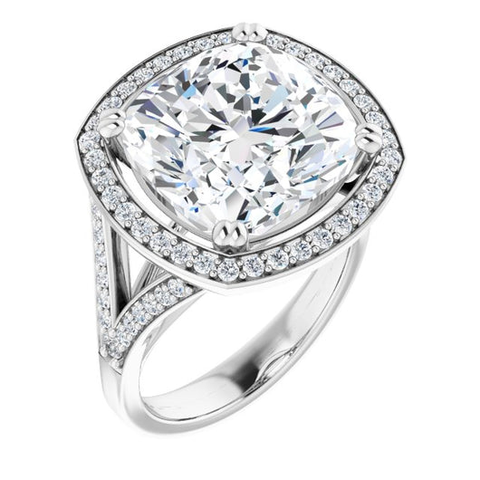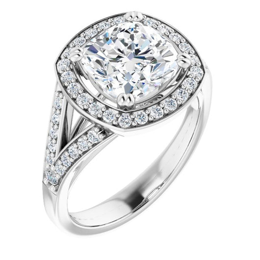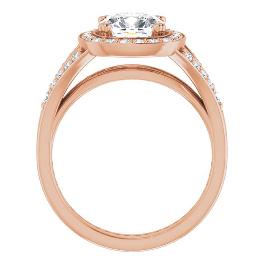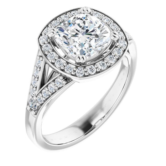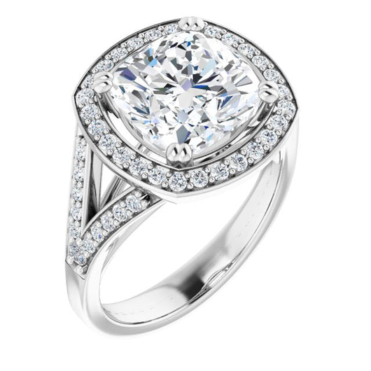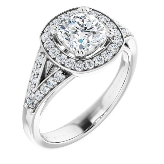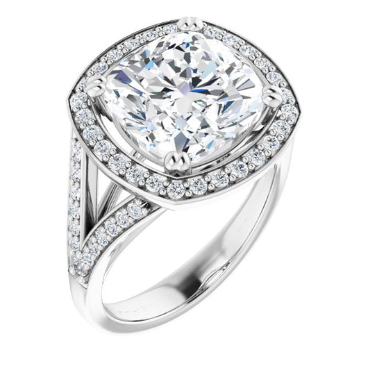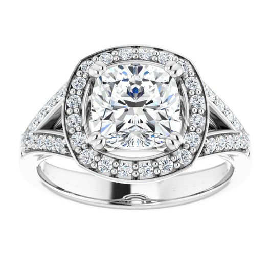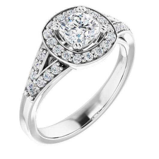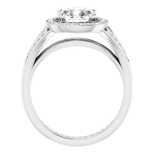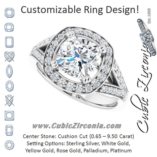Center Stone Shape: Cushion Cut (as pictured). See this customizable ring set with other available center stone shapes here: customize setting.