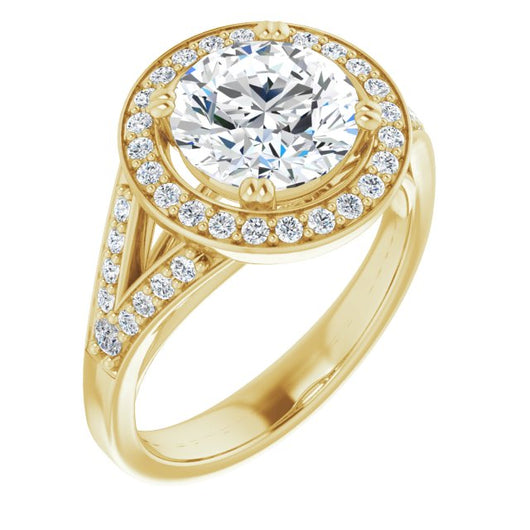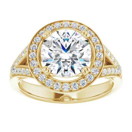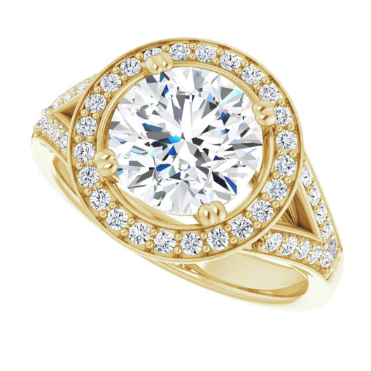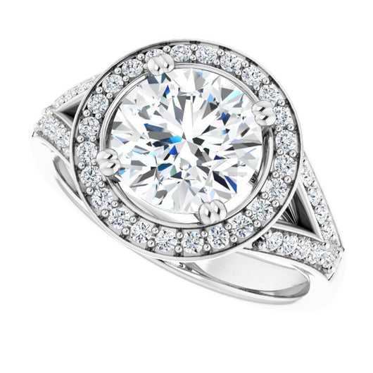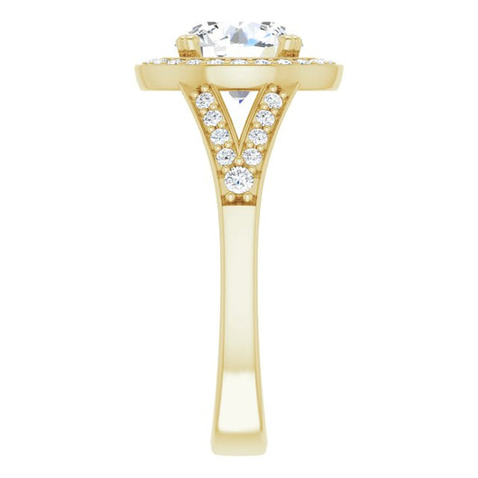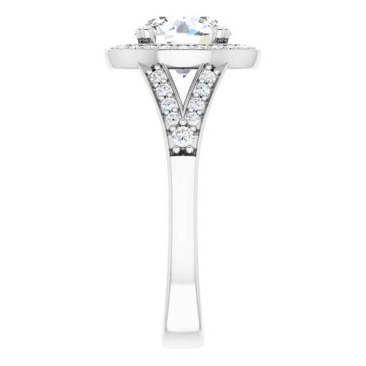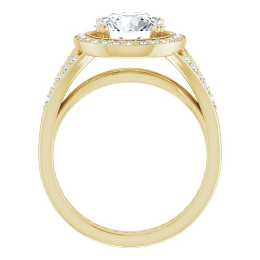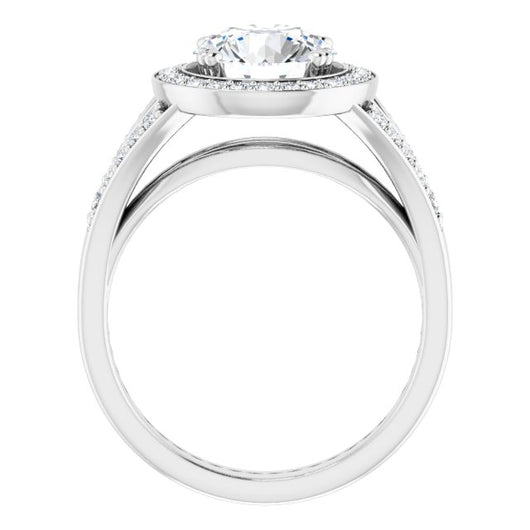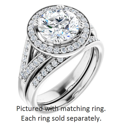 Center Stone Shape: Round Cut (as pictured). See this customizable ring set with other available center stone shapes here: customize setting.