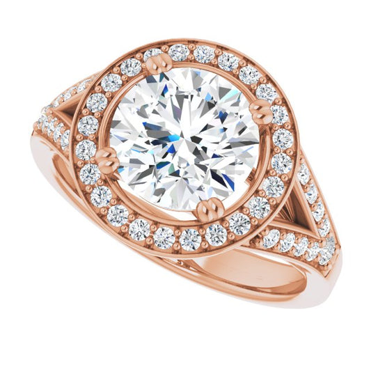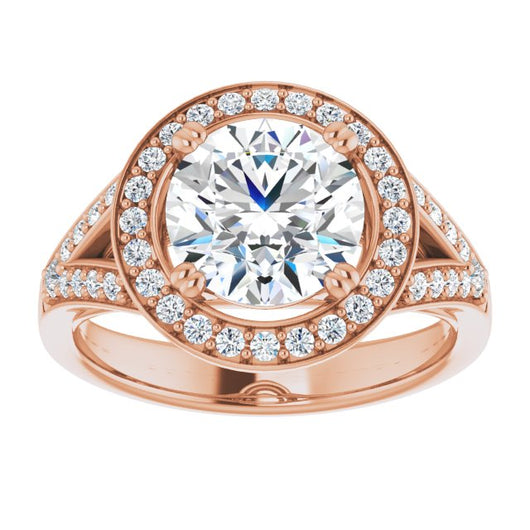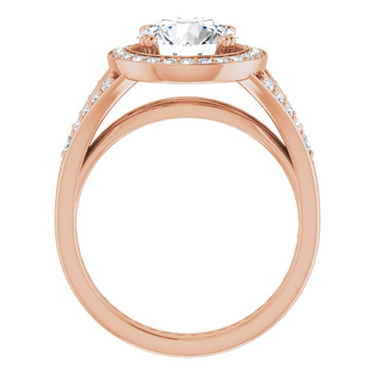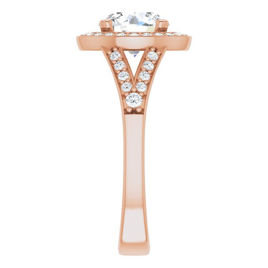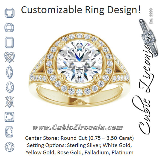 * Your ring’s total carat weight (TCW), band width, weight in grams, and/or number and size of accent, pavé, or halo stones will vary up or down depending on your choice of customizable center stone shape and size, precious metal type, and finger ring size via the drop-down options provided.