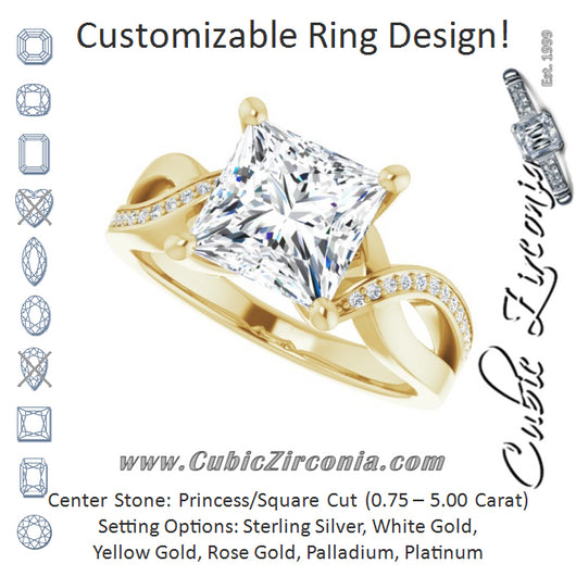 Center Stone Shape: Princess/Square Cut (as pictured). See this customizable ring set with other available center stone shapes here: customize setting.