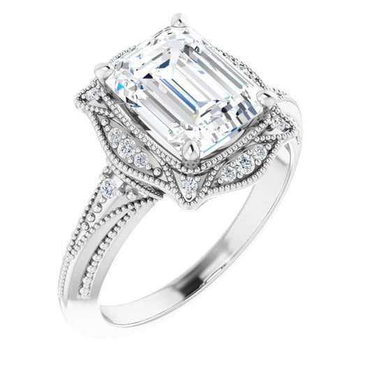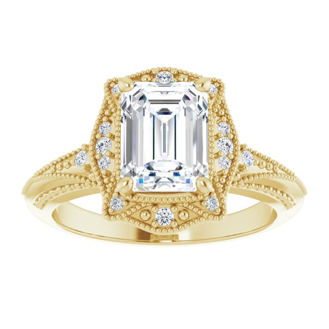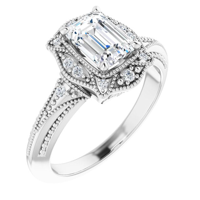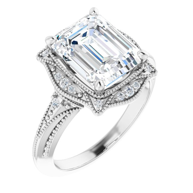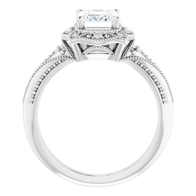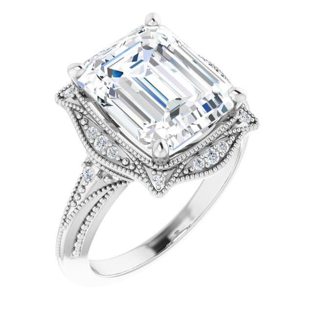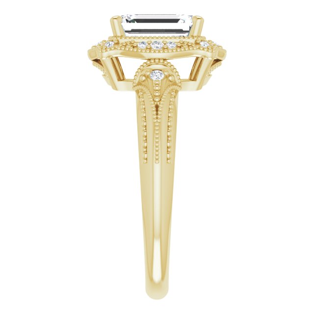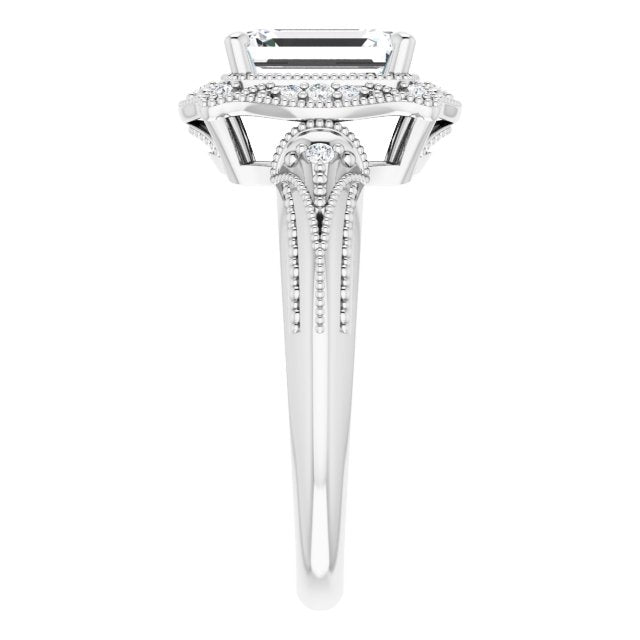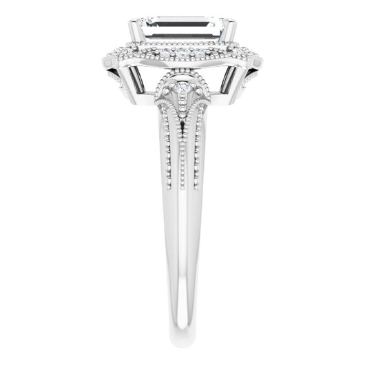Center Stone Shape: Radiant Cut (as pictured with Emerald Cut). See this customizable ring set with other available center stone shapes here: customize setting.