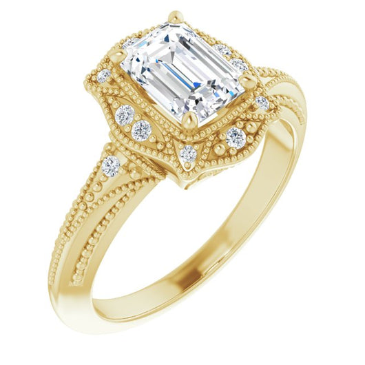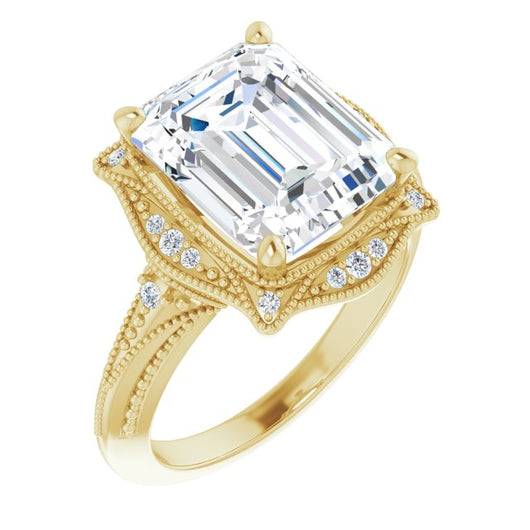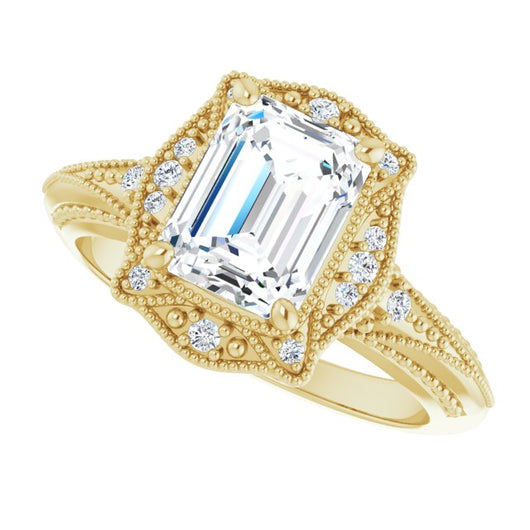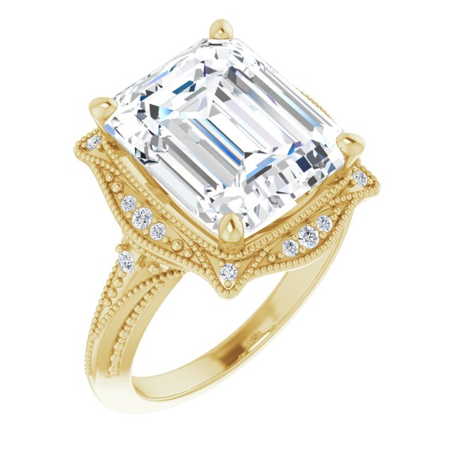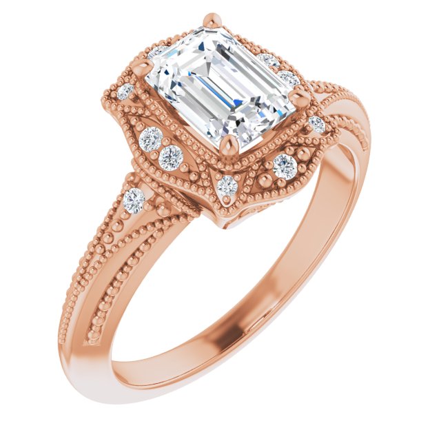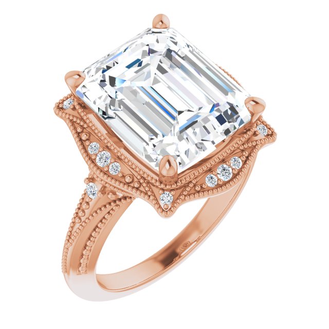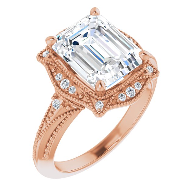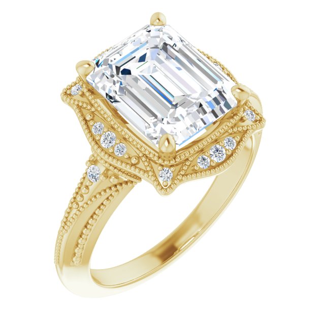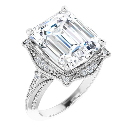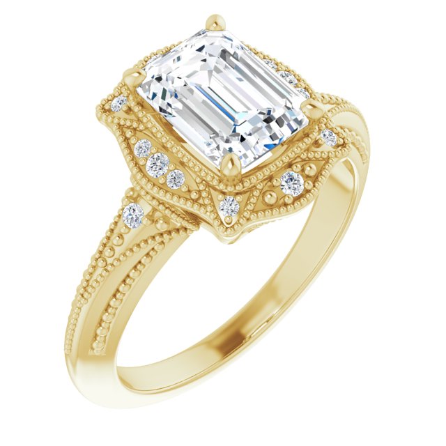 Center Stone Shape: Radiant Cut (as pictured with Emerald Cut). See this customizable ring set with other available center stone shapes here: customize setting.