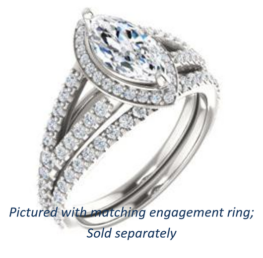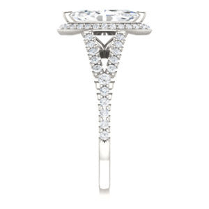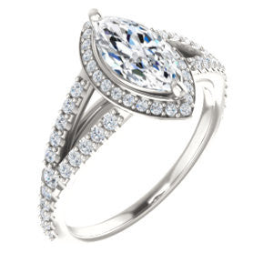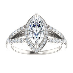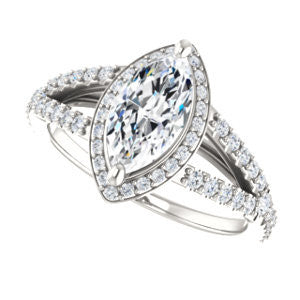 Cubic Zirconia Engagement Ring- The Azul (Customizable Marquise Cut Style with Cathedral-Halo and Split-Pavé Band)