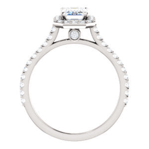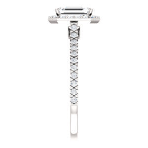 Cubic Zirconia Engagement Ring- The Bailey (Customizable Cathedral-set Emerald Cut Design with Halo, Thin Pavé Band and Floating Peekaboo)
