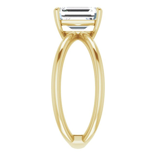 The Emerald Cut ā the emerald cut, or emerald octagon cut (aka rectangular octagon), borrows its name from the ideal way to cut green emerald stones. That happens to be shaping a green emerald into this elongated octagon shape! The shape's elongated style with with non-equal length and width naturally creates longer facets than a smaller stone or squared shape would have. The effect? The emerald cut stone's long, step-cut facets reflect more light and make the stone appear larger than it actually is. Unconfirmed internet reports claim this stone is frequently chosen as a gift by men with less well-endowed bank accounts (more bang for your buck so to speak...sorry, we couldn't resist).