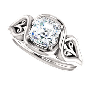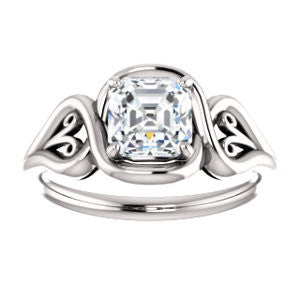 Cubic Zirconia Engagement Ring- The Bentley (Customizable Asscher Cut Solitaire with Wide Tapered Band and Side Engraving Motif)
