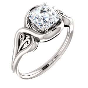 We like to say this ring is as boring as a Bentley automobile, and of course that sophistication-on-wheels vehicle is anything but boring. Twin engraved ring flanks carry a design that’s part-heart and similar in styling to the bottom part of the fleur-de-lis symbol. A thick halo of metal surrounds the prong-set, cathedral-raised Asscher Cut center stone in your choice of carat weight from 0.65 to 5.0 carats of 5A diamond-quality cubic zirconia. We think this is a ring for a woman who herself is never boring, an adventurous lady with flair to spare. How does one define “boring” in this way? Well, if you're not at least a little afraid when someone is flipping through the photos on your smart phone…then you're probably pretty boring.