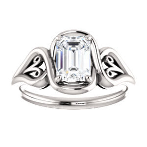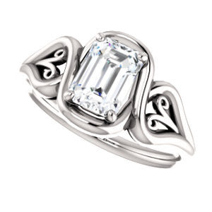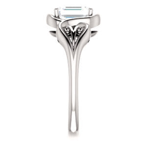 We like to say this ring is as boring as a Bentley automobile, and of course that sophistication-on-wheels vehicle is anything but boring. Twin engraved ring flanks carry a design that’s part-heart and similar in styling to the bottom part of the fleur-de-lis symbol. A thick halo of metal surrounds the prong-set, cathedral-raised Radiant Cut center stone in your choice of carat weight from 0.33 to 5.0 carats of 5A diamond-quality cubic zirconia. We think this is a ring for a woman who herself is never boring, an adventurous lady with flair to spare. How does one define “boring” in this way? Well, if you're not at least a little afraid when someone is flipping through the photos on your smart phone…then you're probably pretty boring.