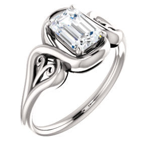 Cubic Zirconia Engagement Ring- The Bentley (Customizable Radiant Cut Solitaire with Wide Tapered Band and Side Engraving Motif)
