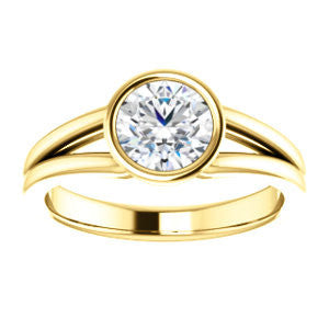 Cubic Zirconia Engagement Ring- The Bernadine (Customizable Bezel-set Round Cut with V-Split Band)