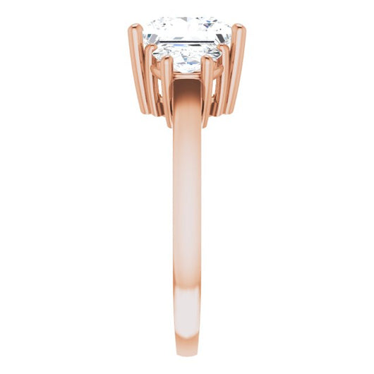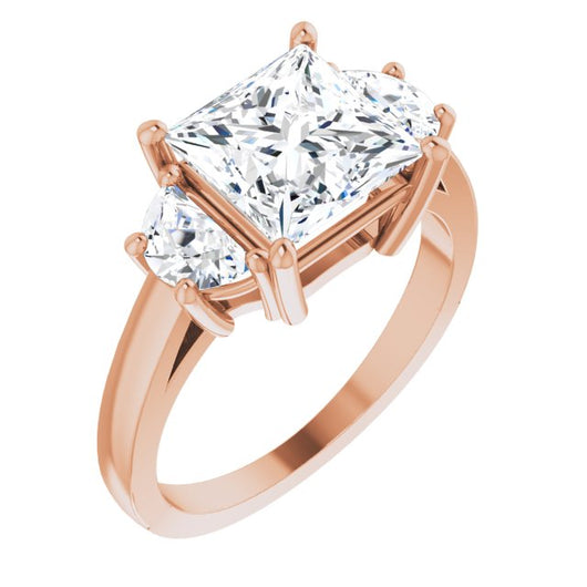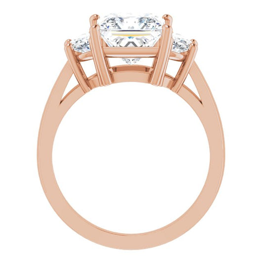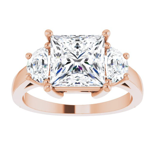 10K Rose Gold Customizable 3-stone Design with Princess/Square Cut Center and Half-moon Side Stones