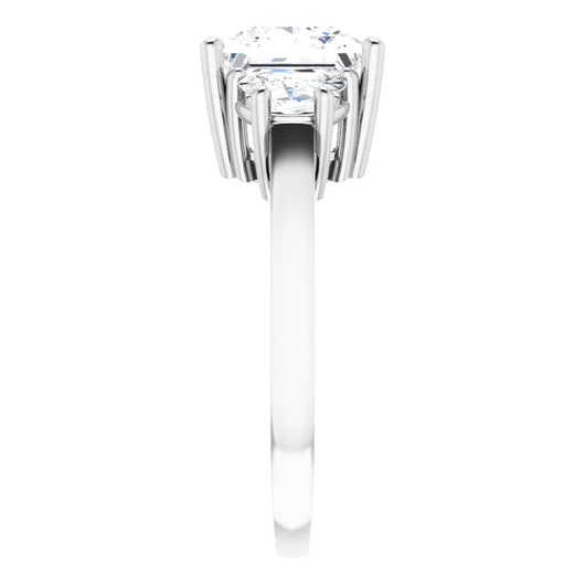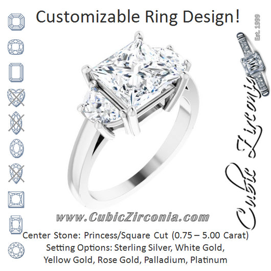 Cubic Zirconia Engagement Ring- The Bree (Customizable 3-stone Design with Princess/Square Cut Center and Half-moon Side Stones)