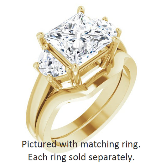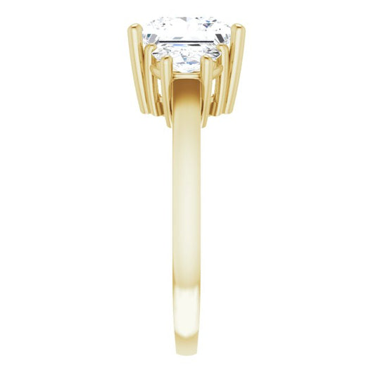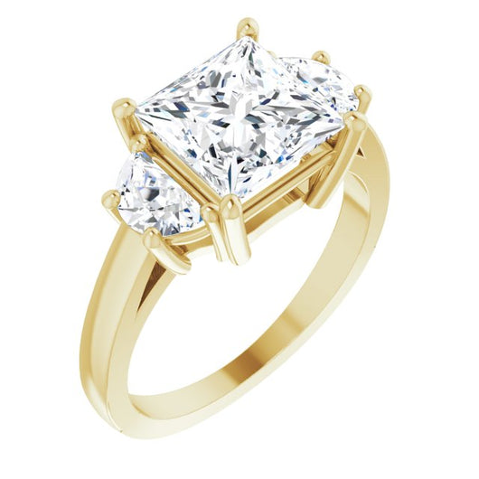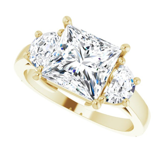 10K Yellow Gold Customizable 3-stone Design with Princess/Square Cut Center and Half-moon Side Stones