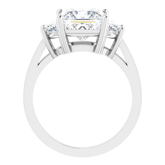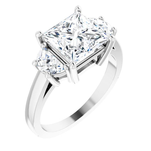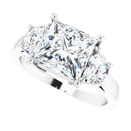 10K White Gold Customizable 3-stone Design with Princess/Square Cut Center and Half-moon Side Stones