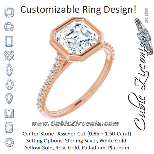 Cubic Zirconia Engagement Ring- The Careena (Customizable Bezel-set Asscher Cut Style with Ultra-thin Pavé-Accented Band)