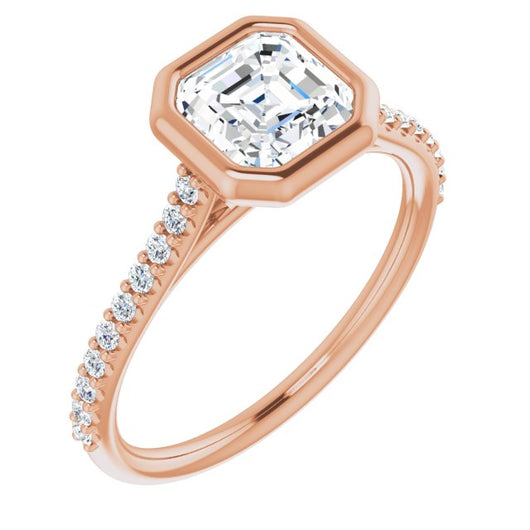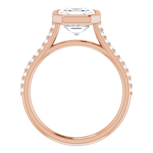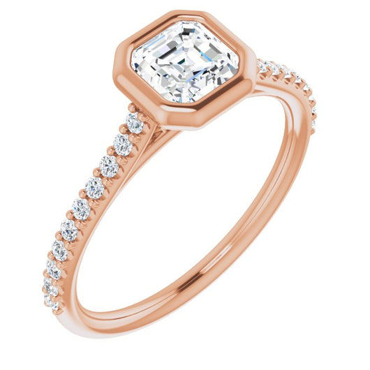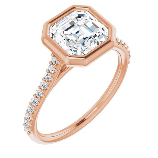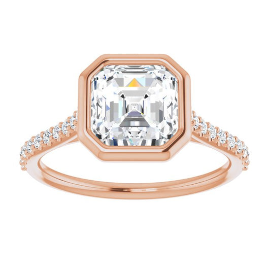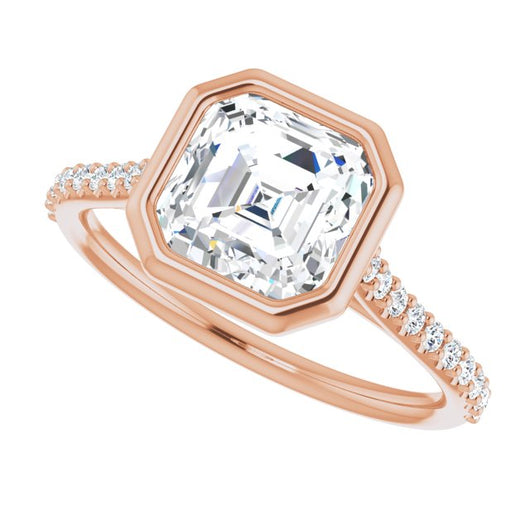 10K Rose Gold Customizable Bezel-set Asscher Cut Style with Ultra-thin Pavé-Accented Band