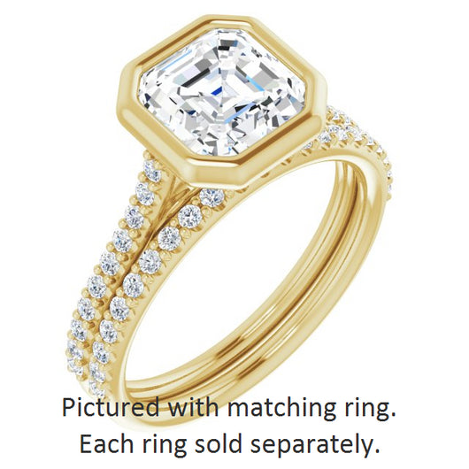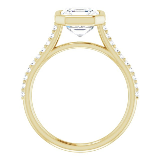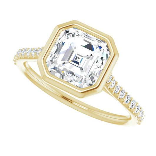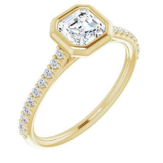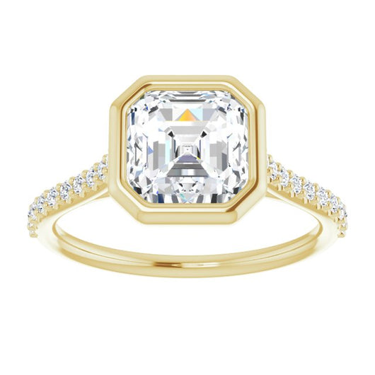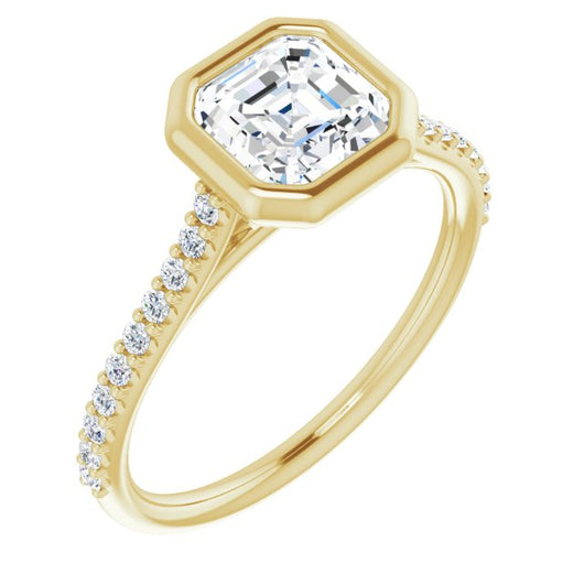 10K Yellow Gold Customizable Bezel-set Asscher Cut Style with Ultra-thin Pavé-Accented Band