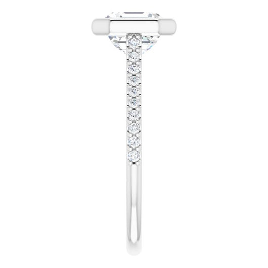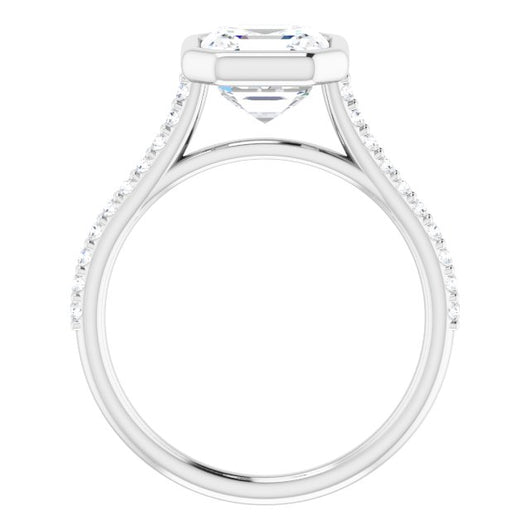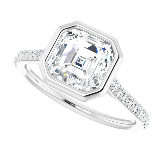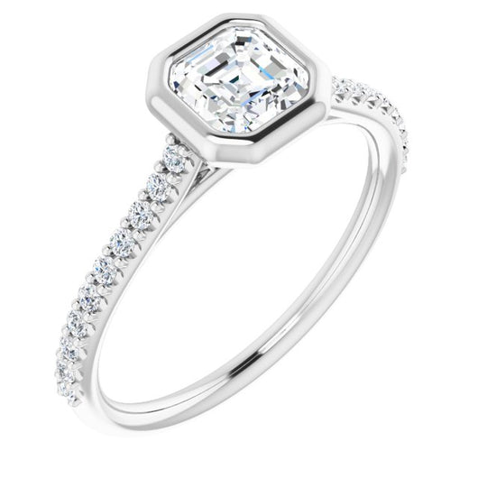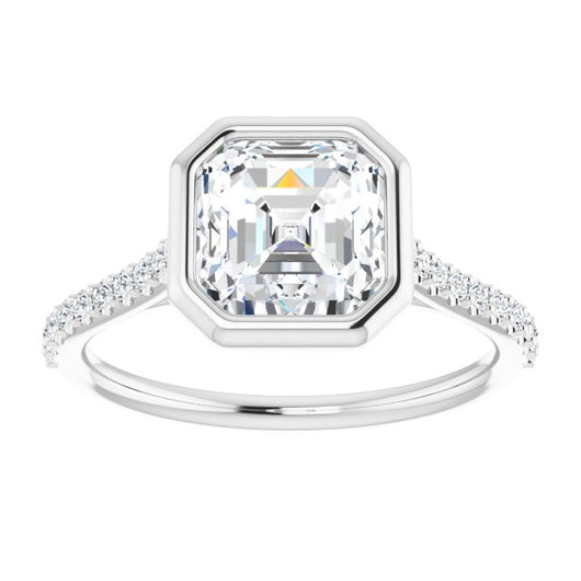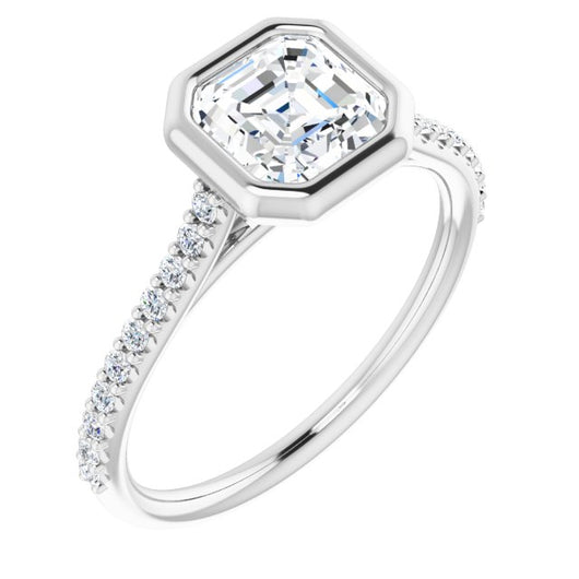 10K White Gold Customizable Bezel-set Asscher Cut Style with Ultra-thin Pavé-Accented Band