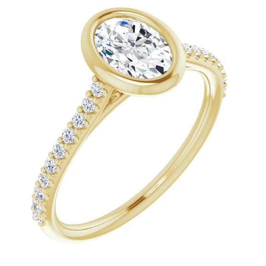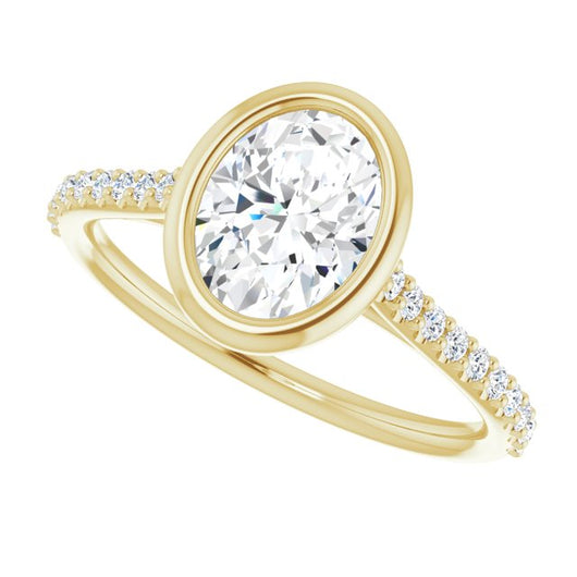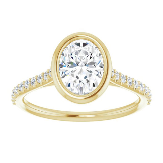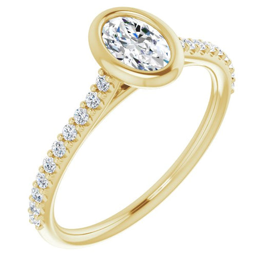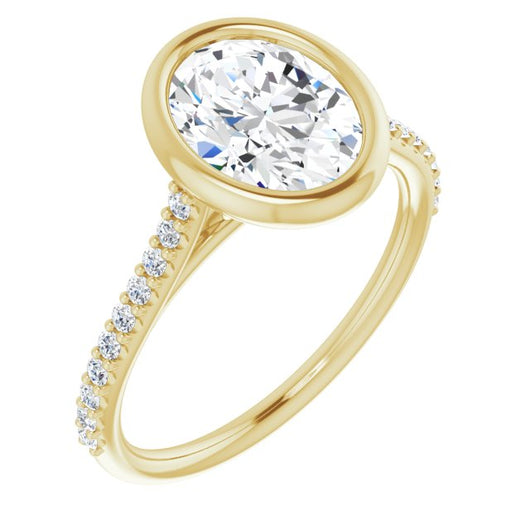 10K Yellow Gold Customizable Bezel-set Oval Cut Style with Ultra-thin Pavé-Accented Band