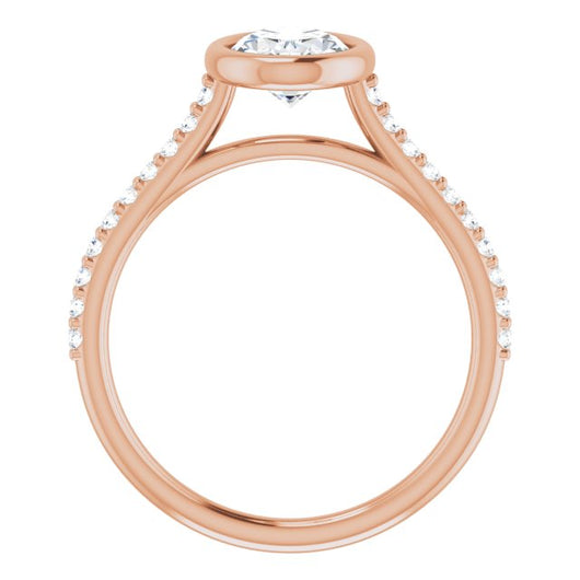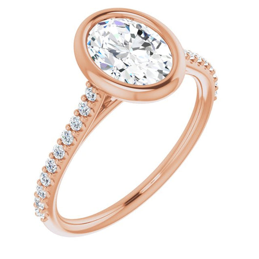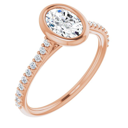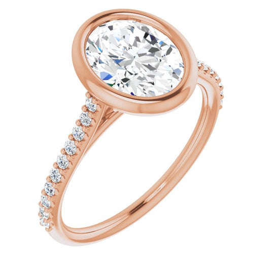 10K Rose Gold Customizable Bezel-set Oval Cut Style with Ultra-thin Pavé-Accented Band