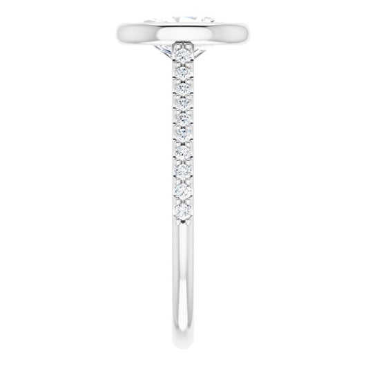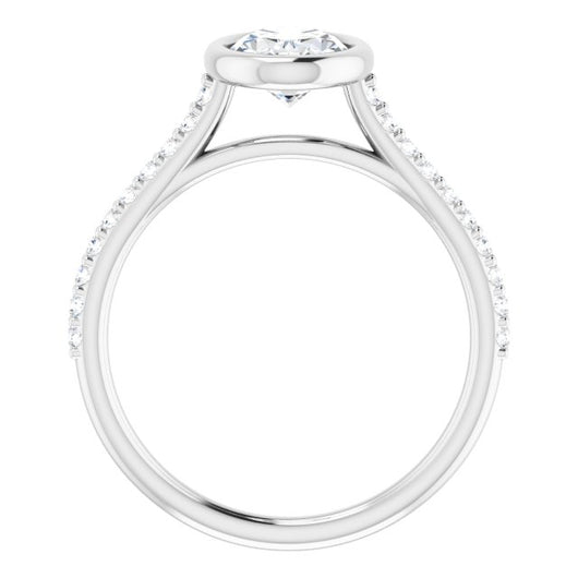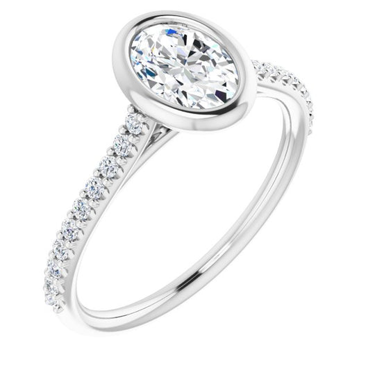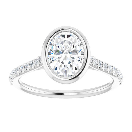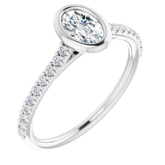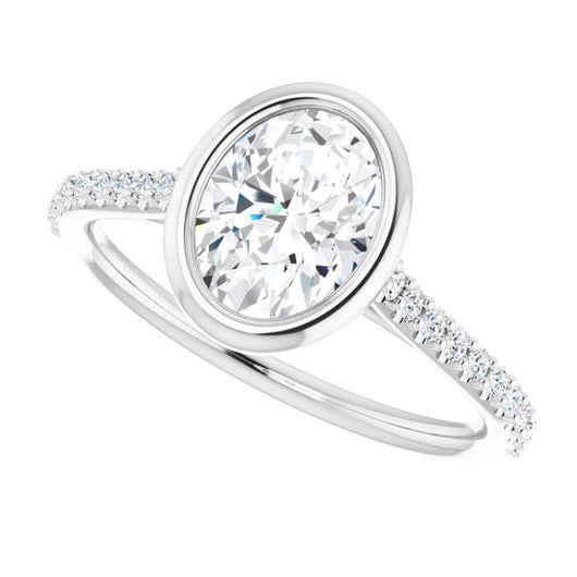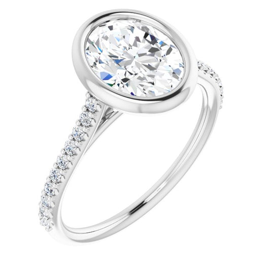 10K White Gold Customizable Bezel-set Oval Cut Style with Ultra-thin Pavé-Accented Band
