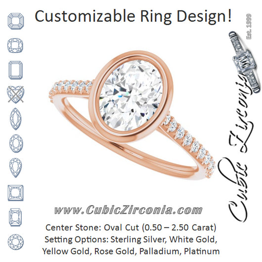 Cubic Zirconia Engagement Ring- The Careena (Customizable Bezel-set Oval Cut Style with Ultra-thin Pavé-Accented Band)