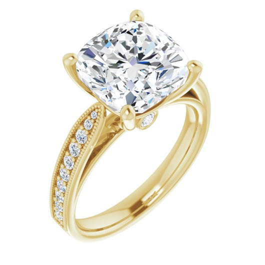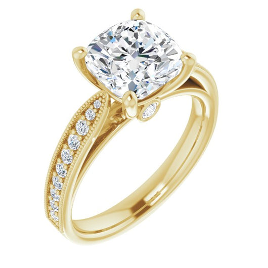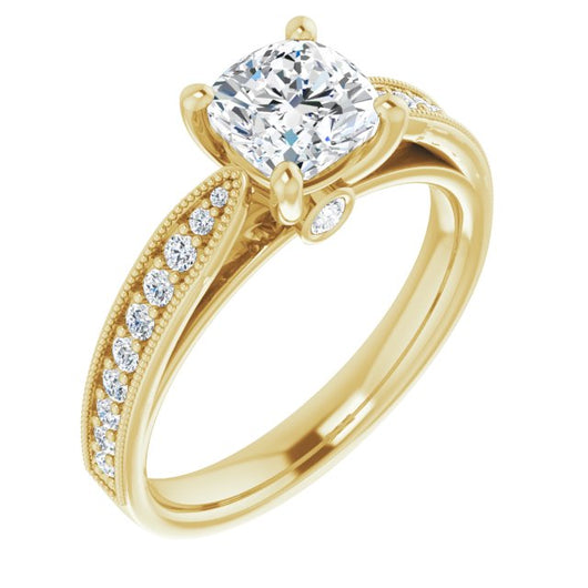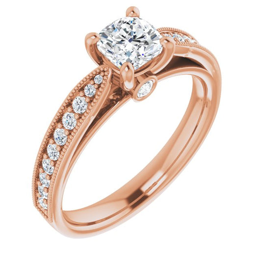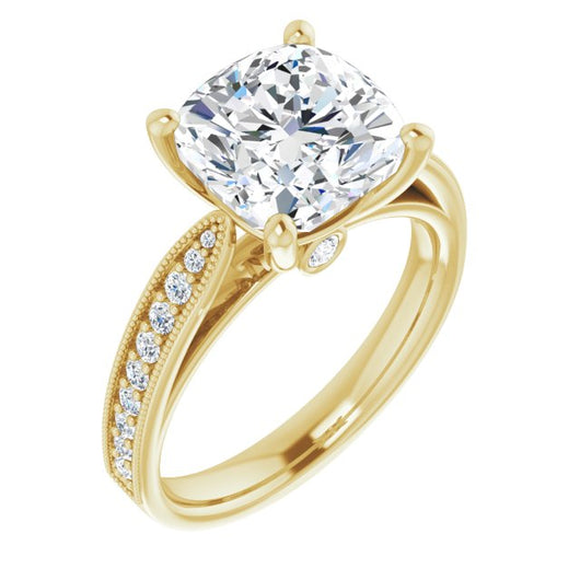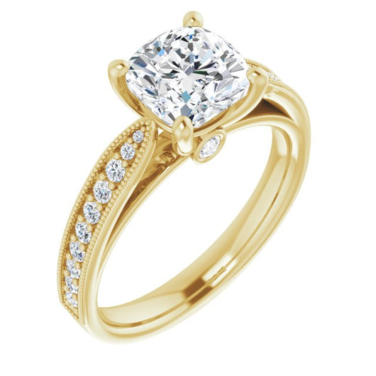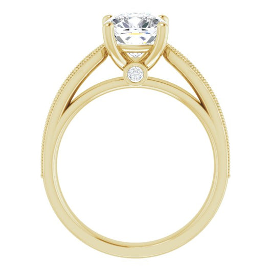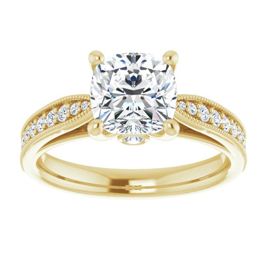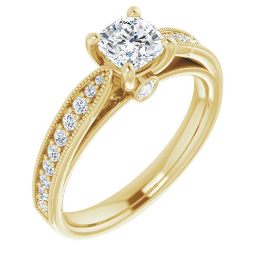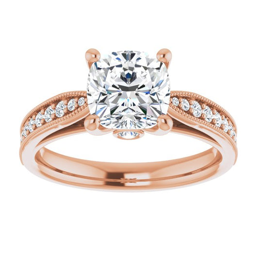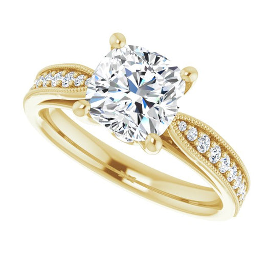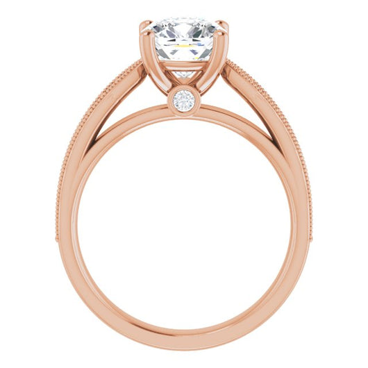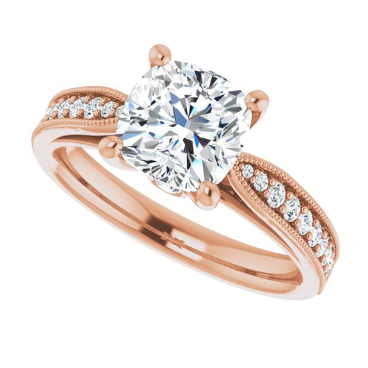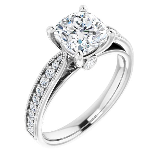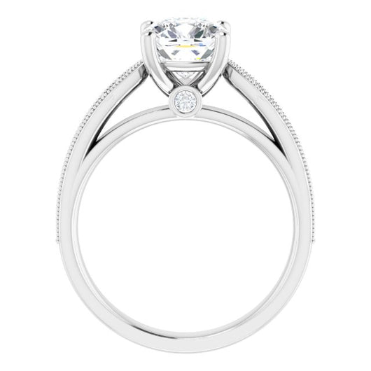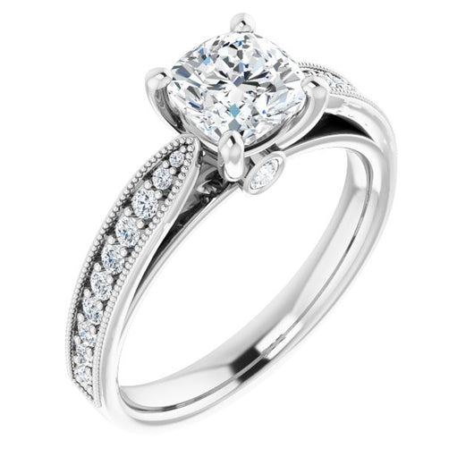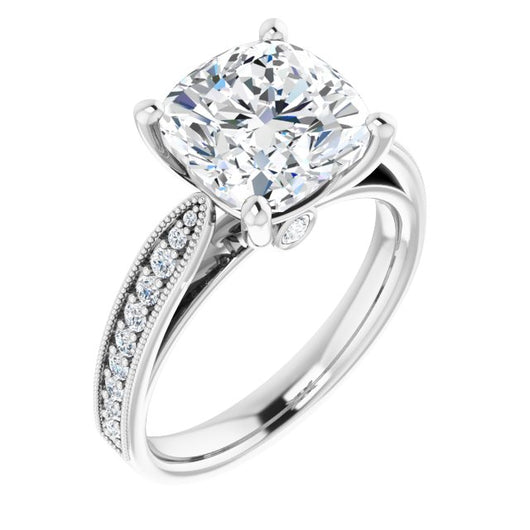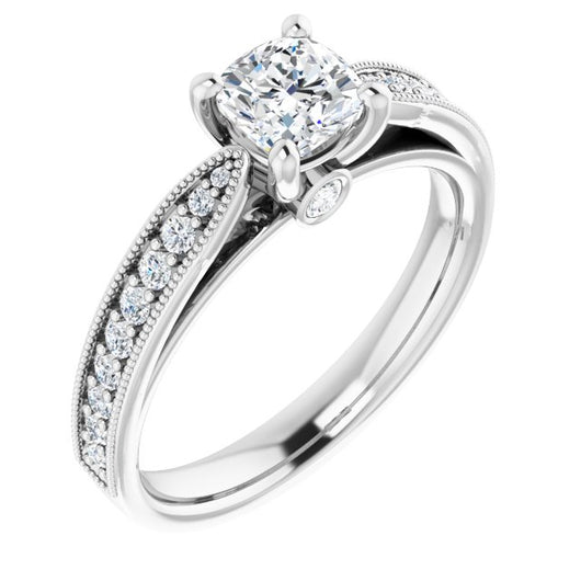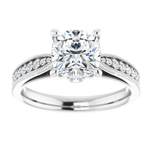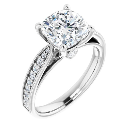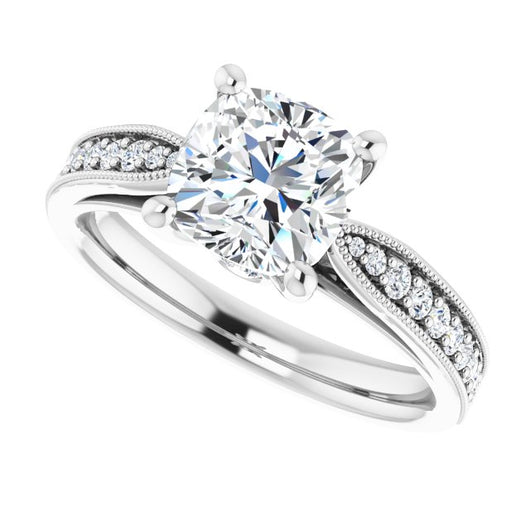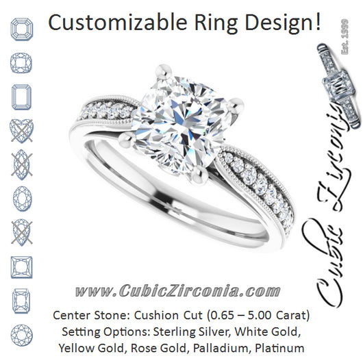Center Stone Shape: Cushion Cut (as pictured). See this customizable ring set with other available center stone shapes here: customize setting.