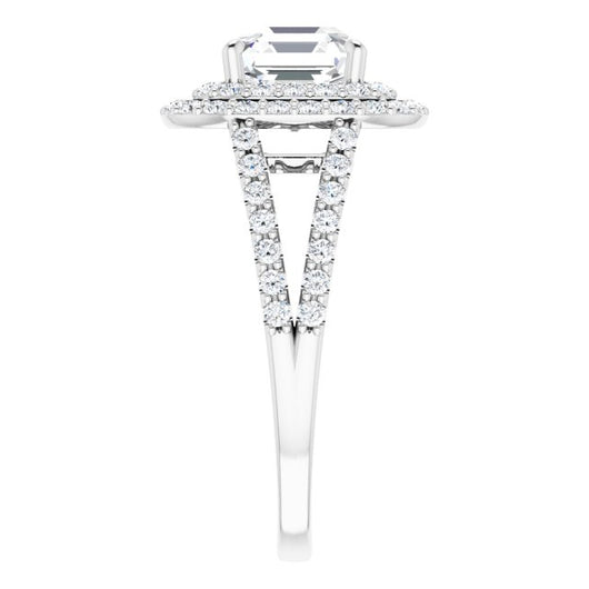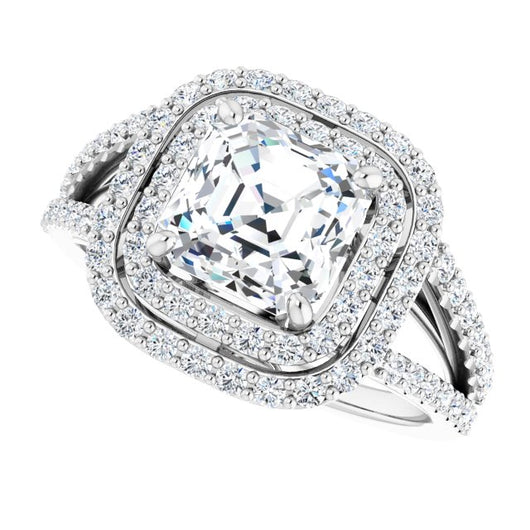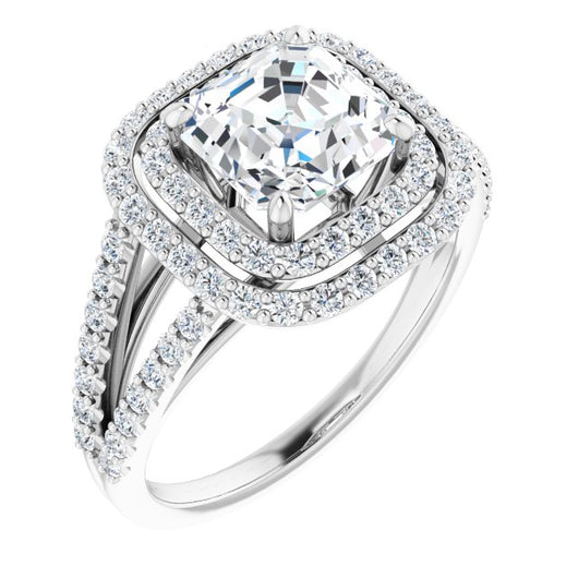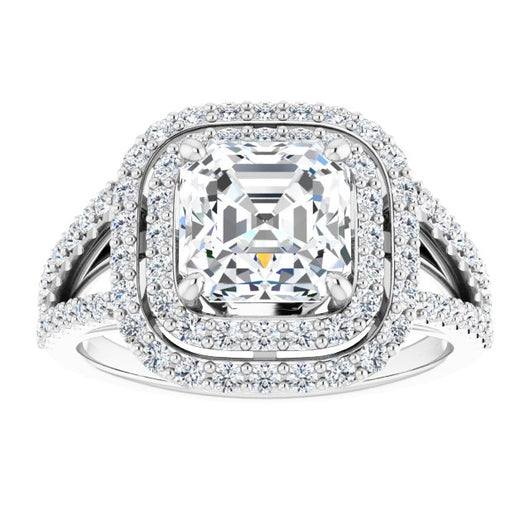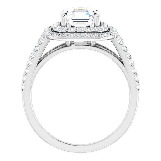10K White Gold Customizable Asscher Cut Design with Double Halo and Wide Split-Pavé Band