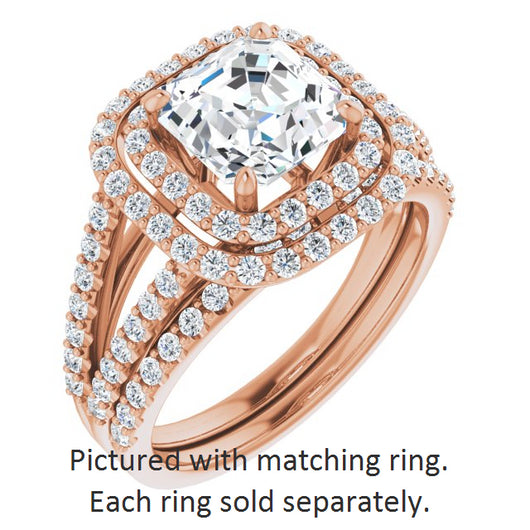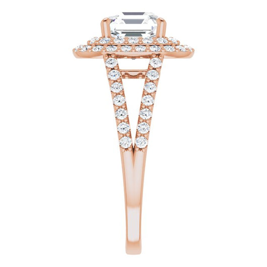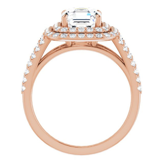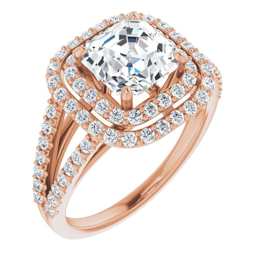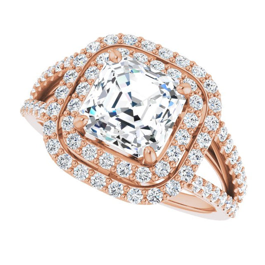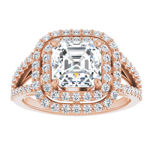 10K Rose Gold Customizable Asscher Cut Design with Double Halo and Wide Split-Pavé Band