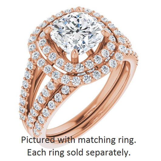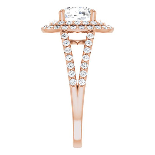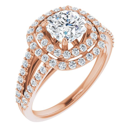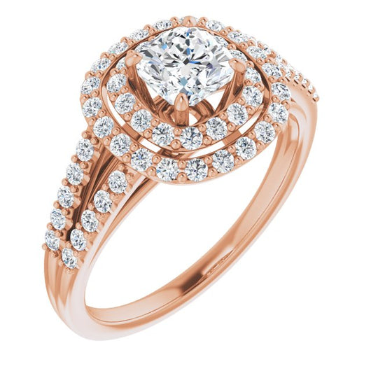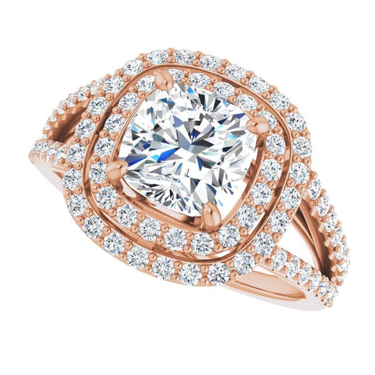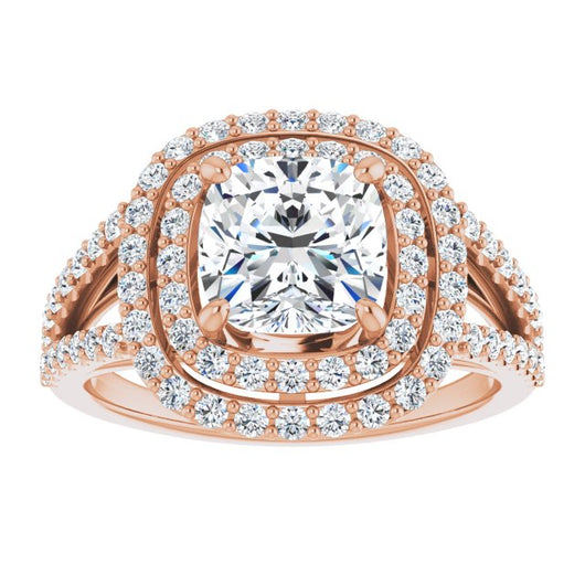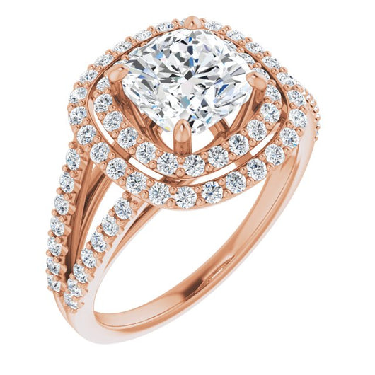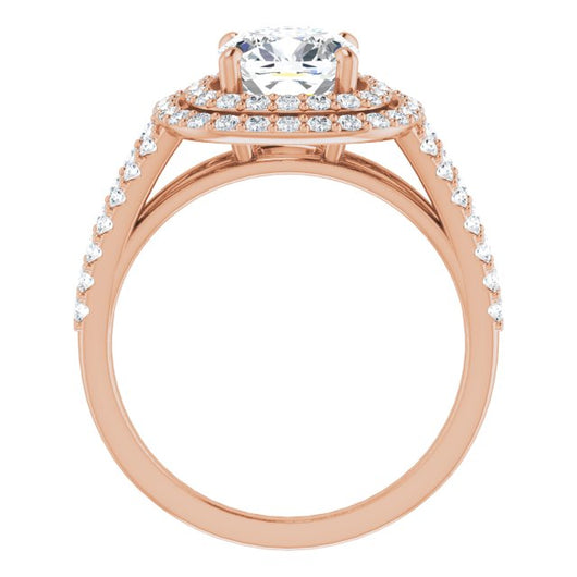 10K Rose Gold Customizable Cushion Cut Design with Double Halo and Wide Split-Pavé Band