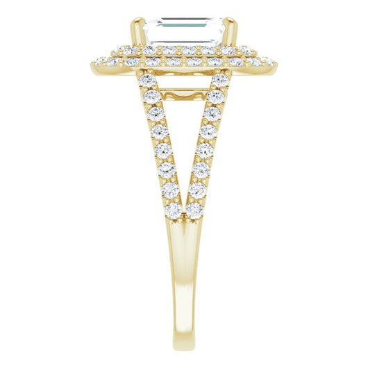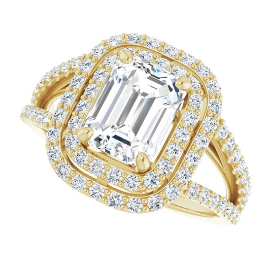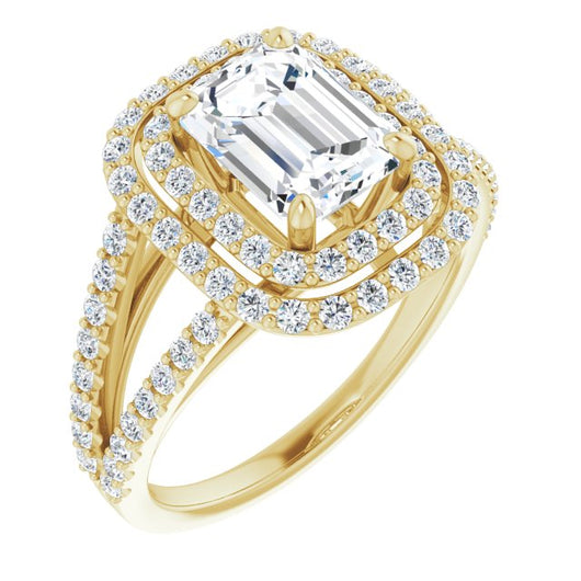 10K Yellow Gold Customizable Emerald/Radiant Cut Design with Double Halo and Wide Split-Pavé Band