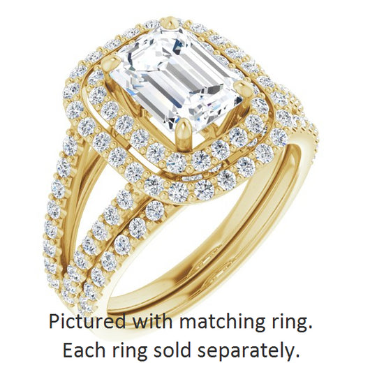 14K Yellow & White Gold Customizable Emerald/Radiant Cut Design with Double Halo and Wide Split-Pavé Band