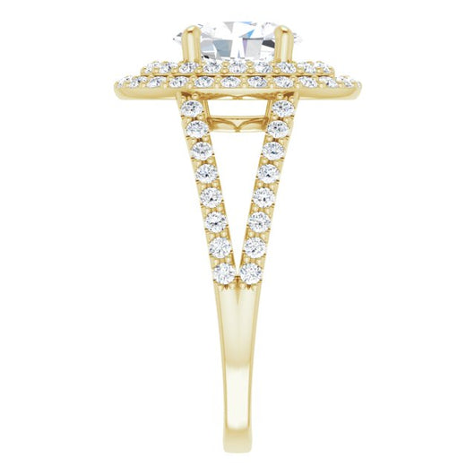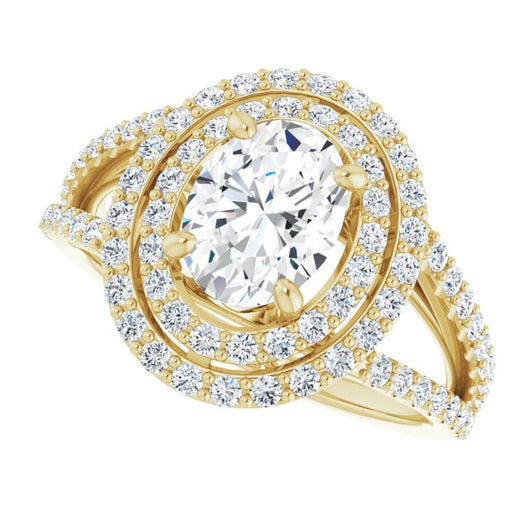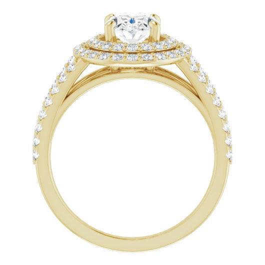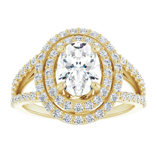 10K Yellow Gold Customizable Oval Cut Design with Double Halo and Wide Split-Pavé Band