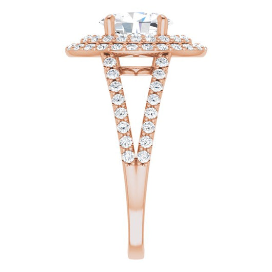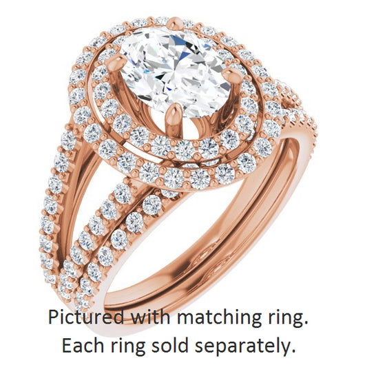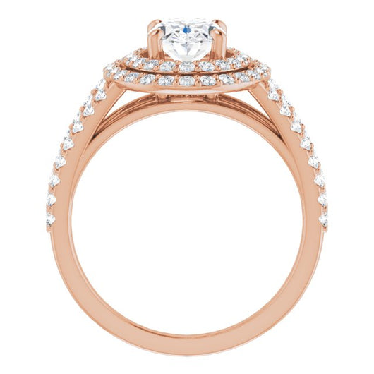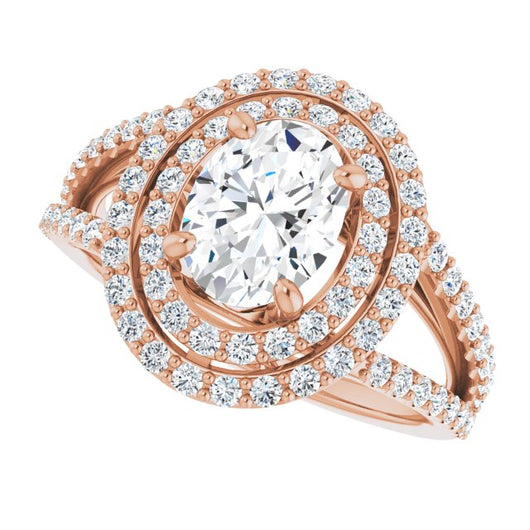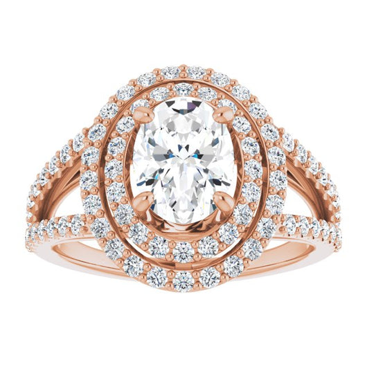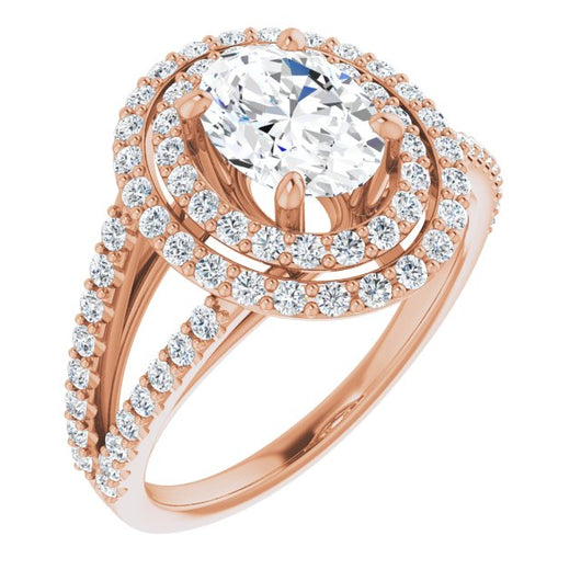 10K Rose Gold Customizable Oval Cut Design with Double Halo and Wide Split-Pavé Band
