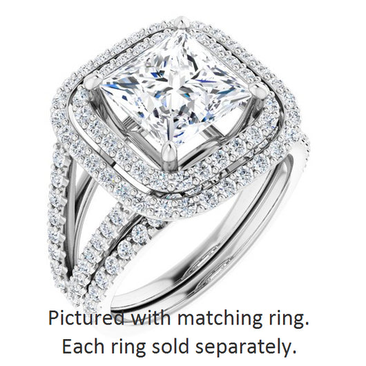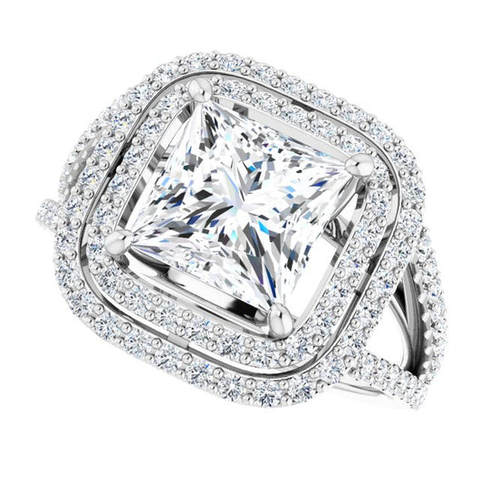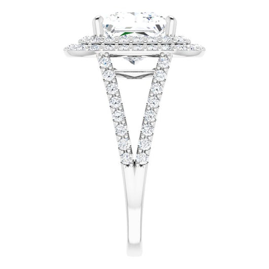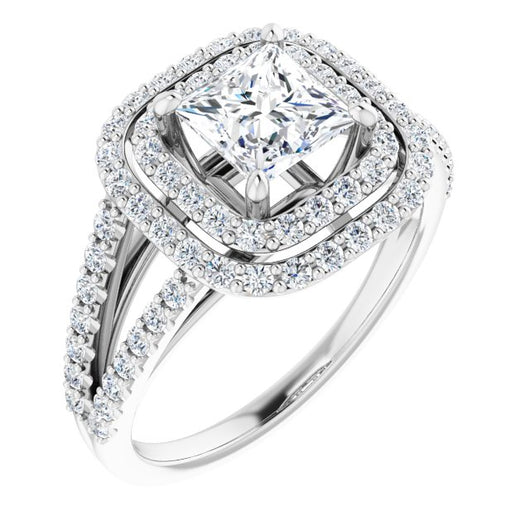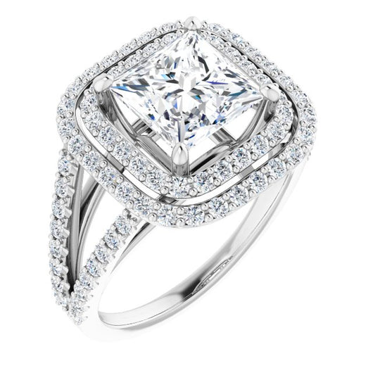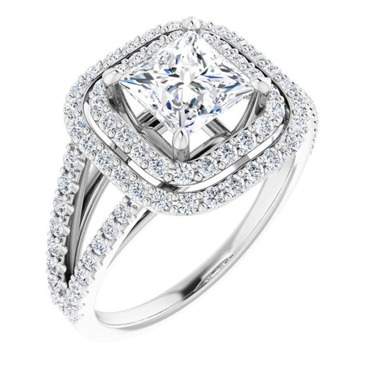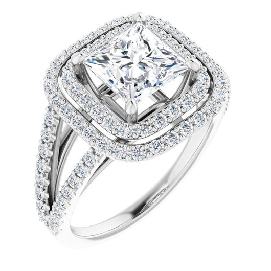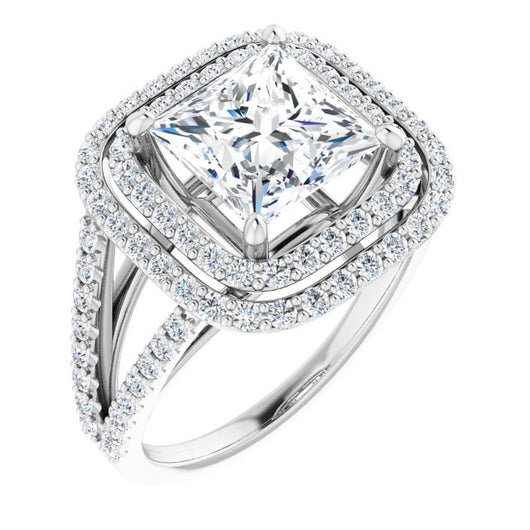 10K White Gold Customizable Princess/Square Cut Design with Double Halo and Wide Split-Pavé Band