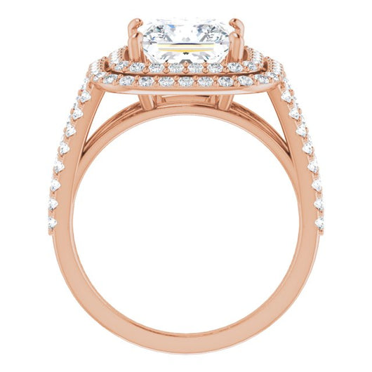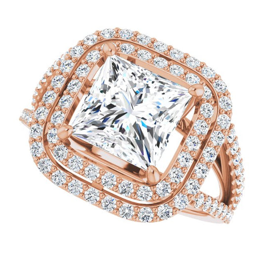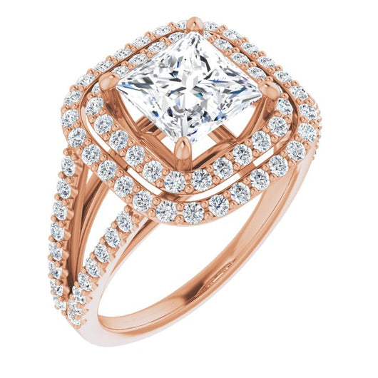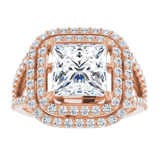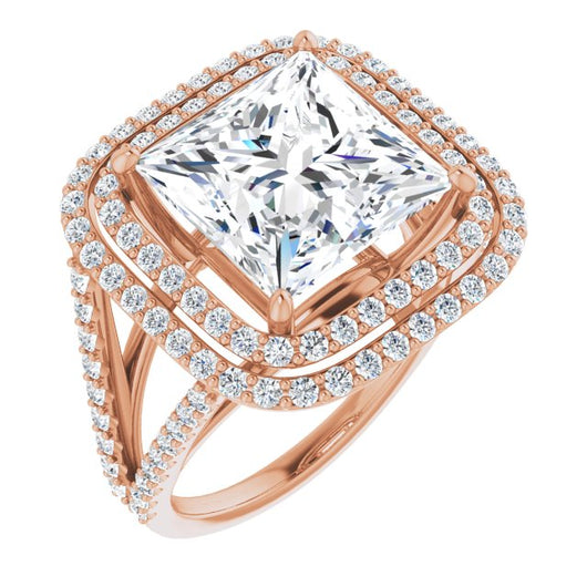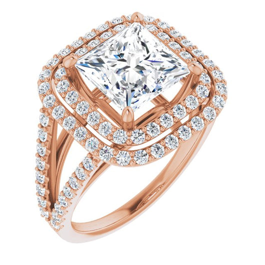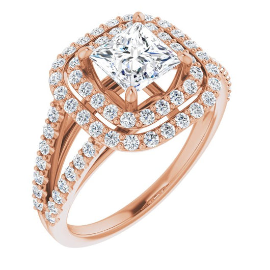 10K Rose Gold Customizable Princess/Square Cut Design with Double Halo and Wide Split-Pavé Band