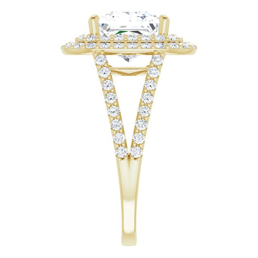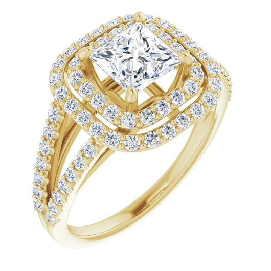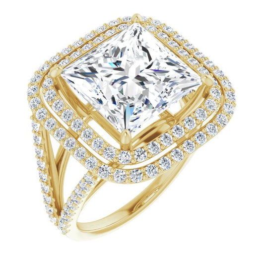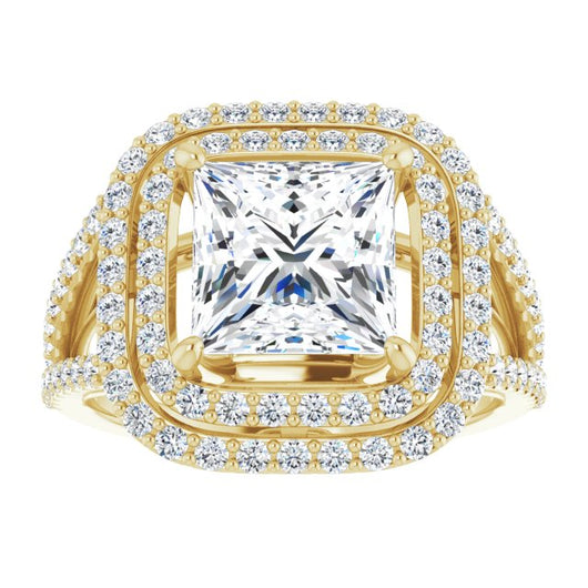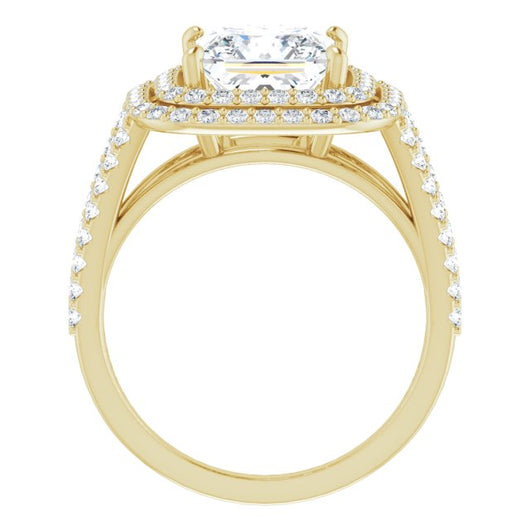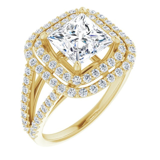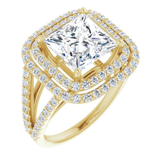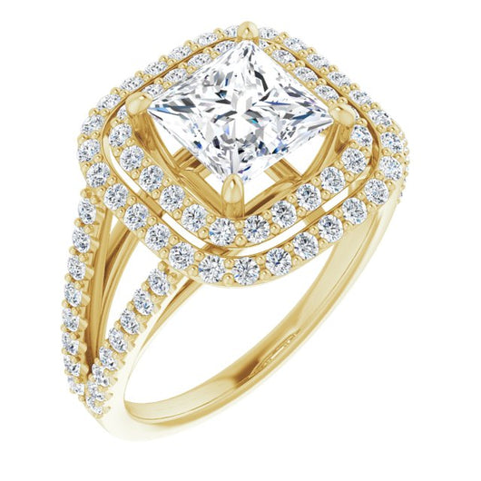 10K Yellow Gold Customizable Princess/Square Cut Design with Double Halo and Wide Split-Pavé Band