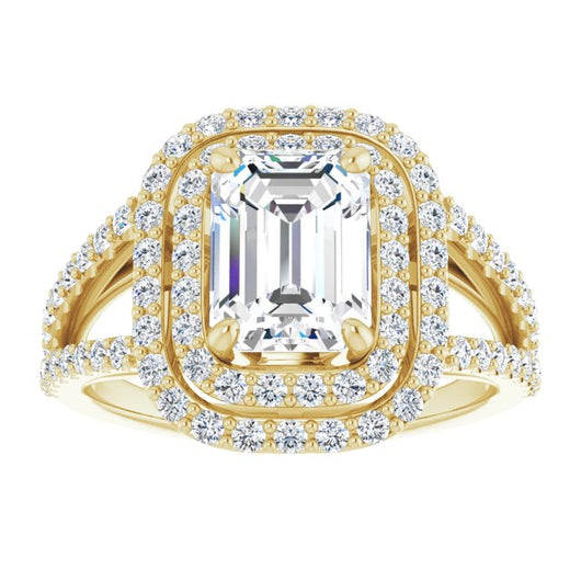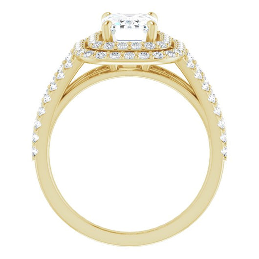 10K Yellow Gold Customizable Emerald/Radiant Cut Design with Double Halo and Wide Split-Pavé Band