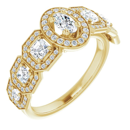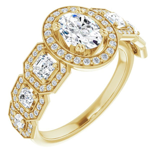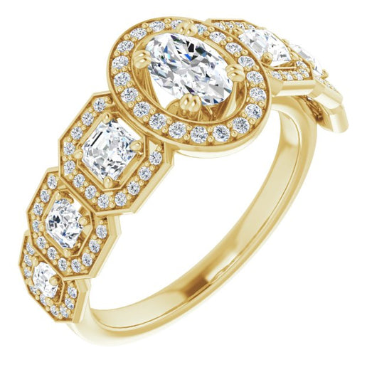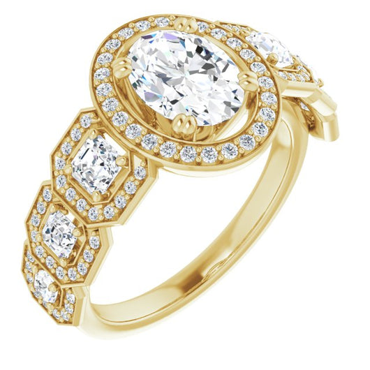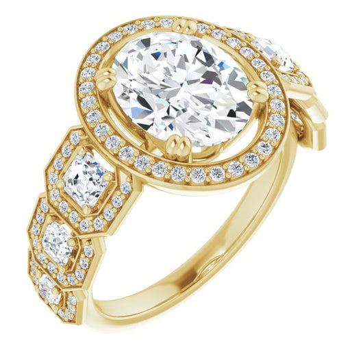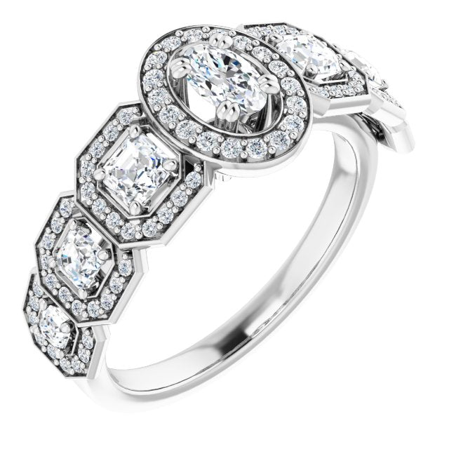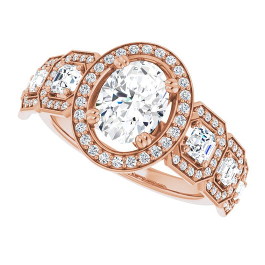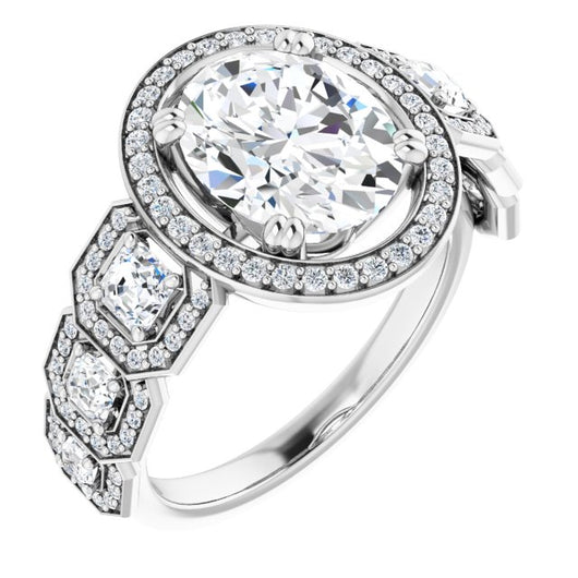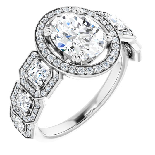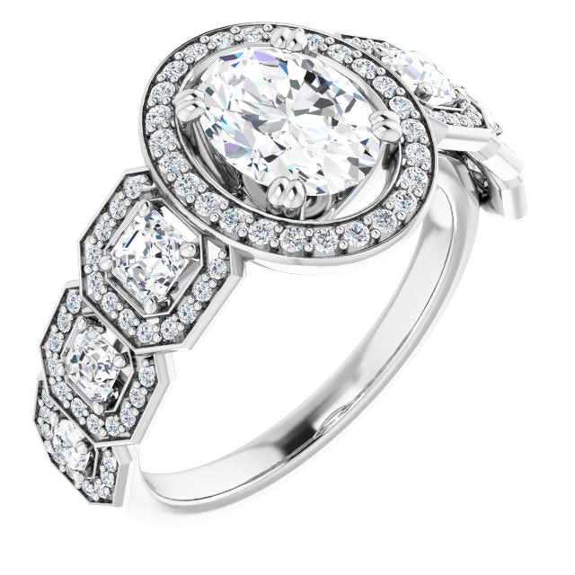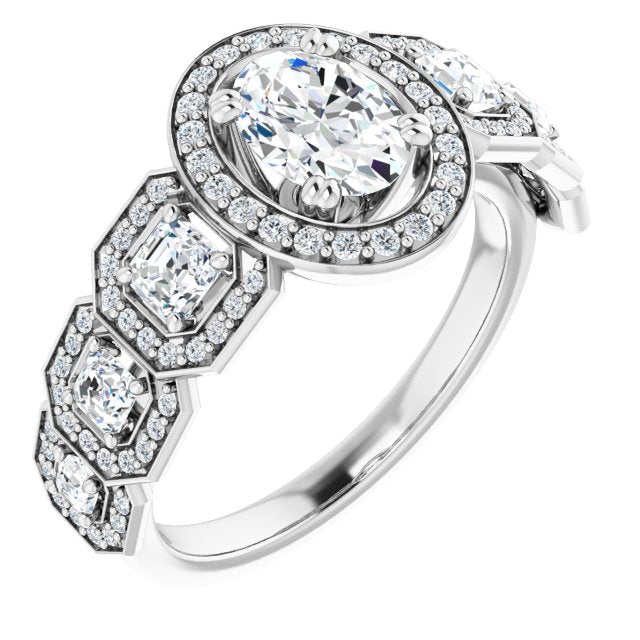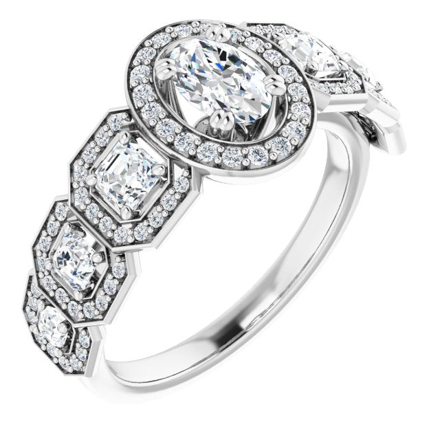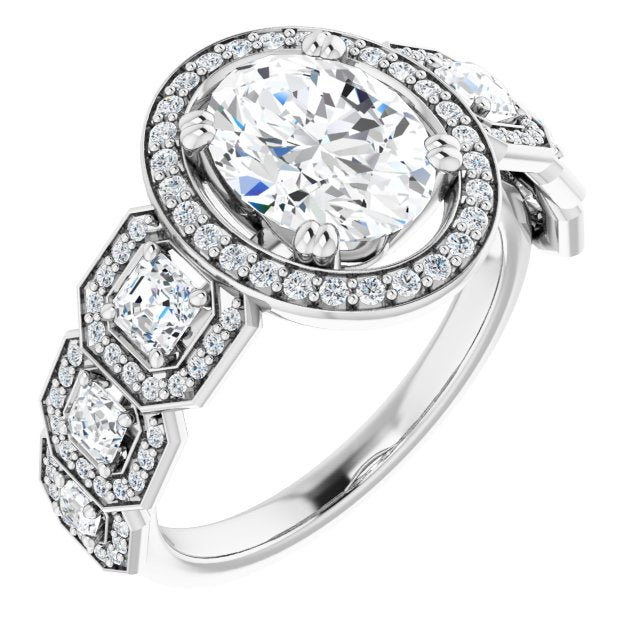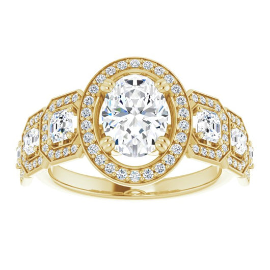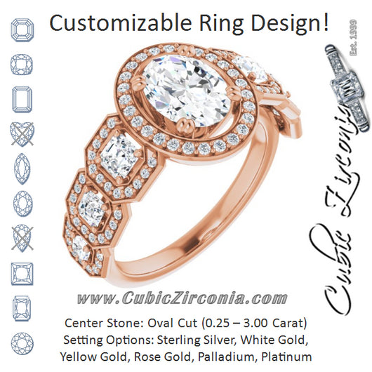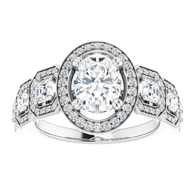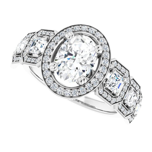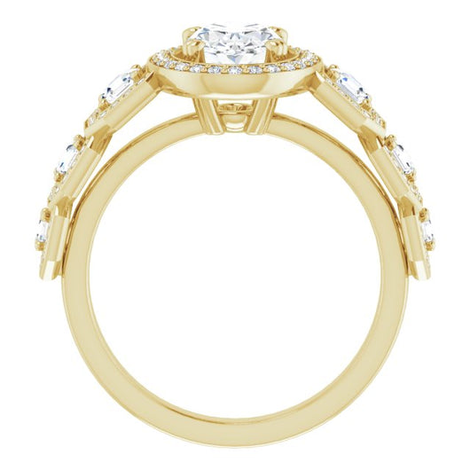 Center Stone Shape: Oval Cut (as pictured). See this customizable ring set with other available center stone shapes here: customize setting.