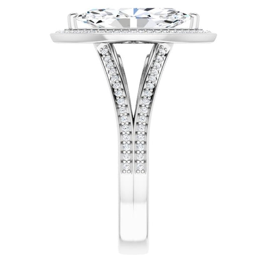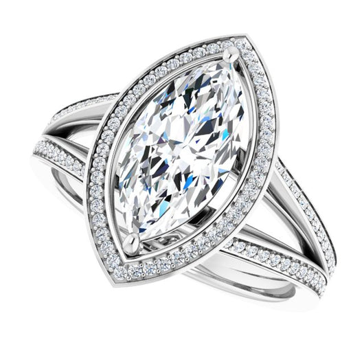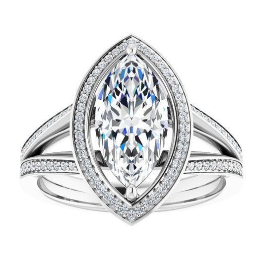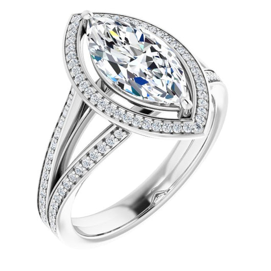 10K White Gold Customizable Marquise Cut Design with Split-Band Shared Prong & Halo