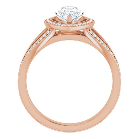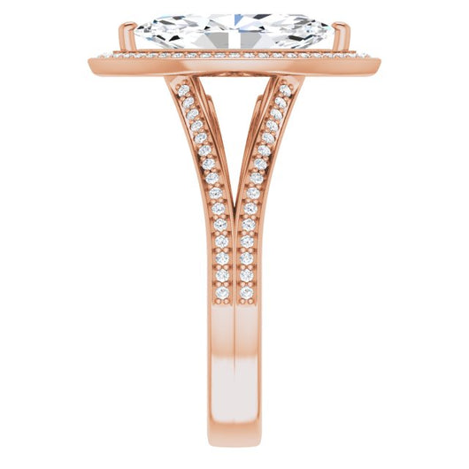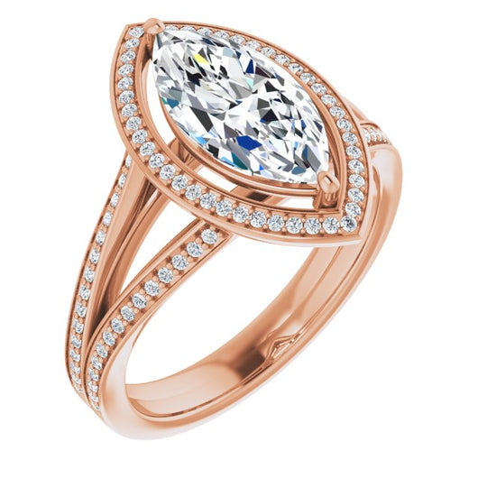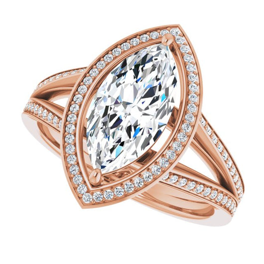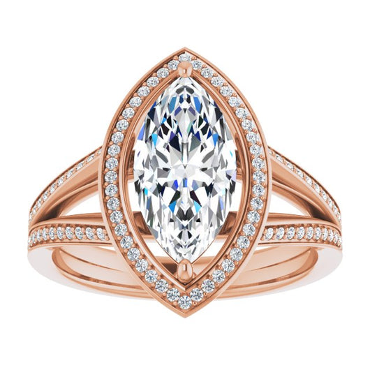 10K Rose Gold Customizable Marquise Cut Design with Split-Band Shared Prong & Halo