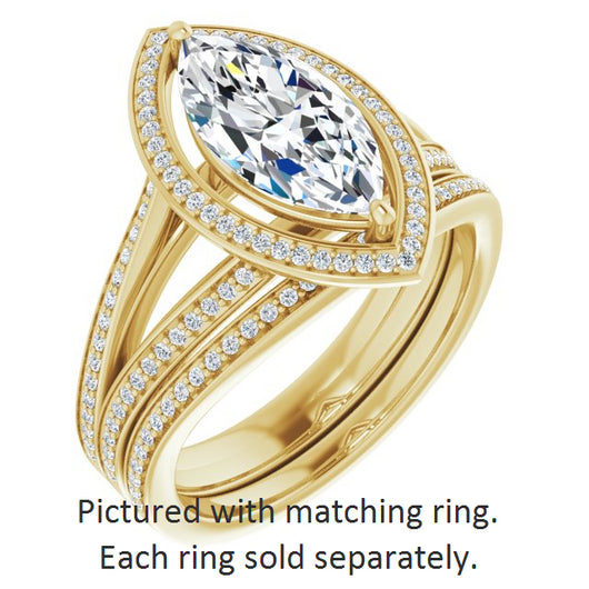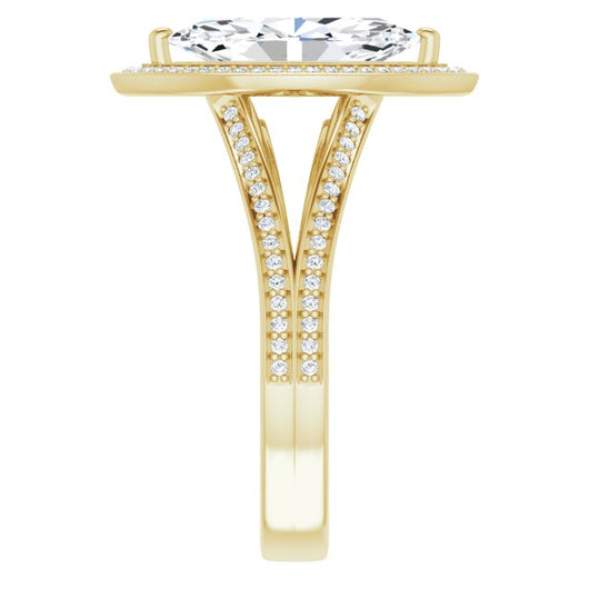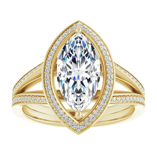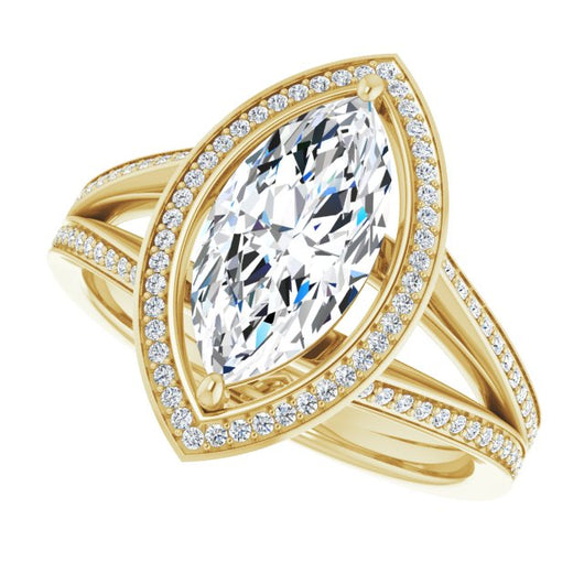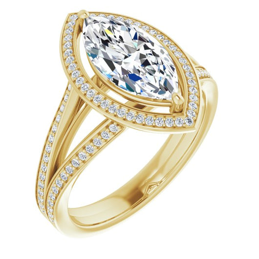 10K Yellow Gold Customizable Marquise Cut Design with Split-Band Shared Prong & Halo