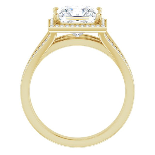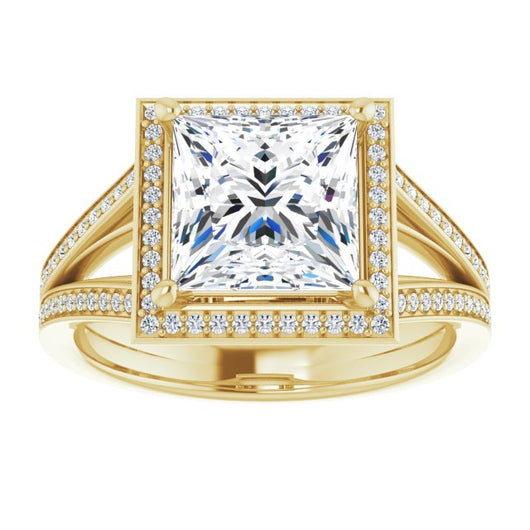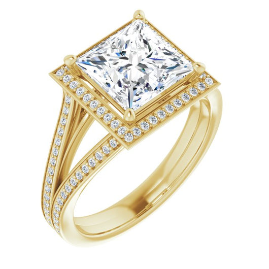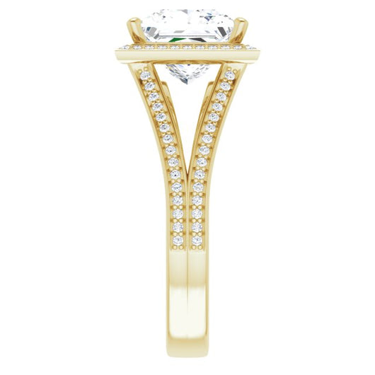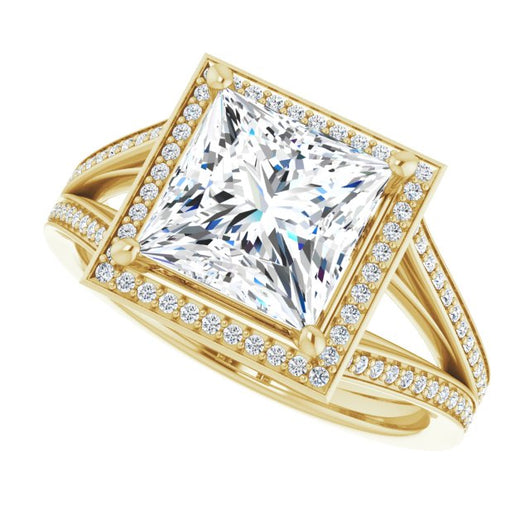 10K Yellow Gold Customizable Princess/Square Cut Design with Split-Band Shared Prong & Halo
