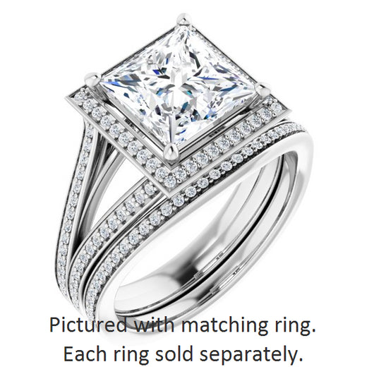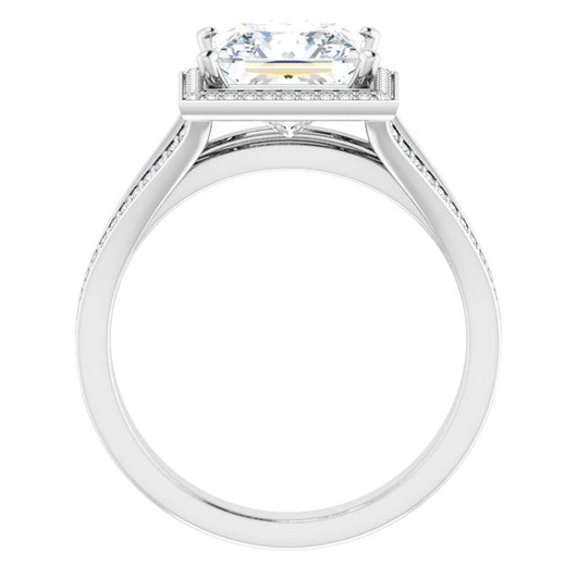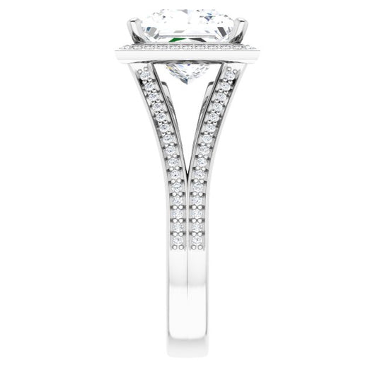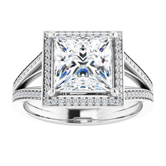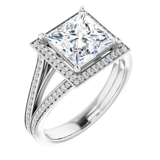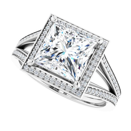 10K White Gold Customizable Princess/Square Cut Design with Split-Band Shared Prong & Halo