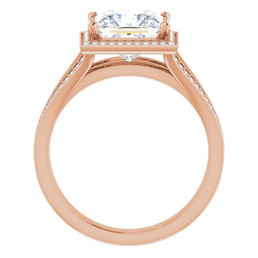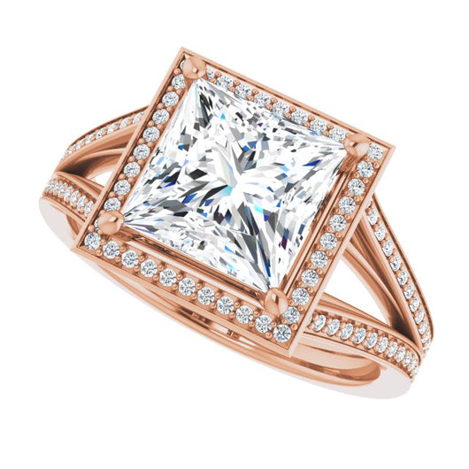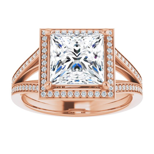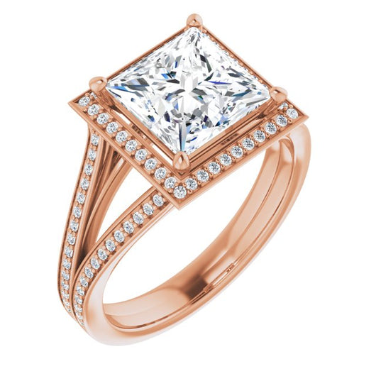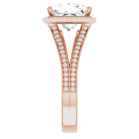 10K Rose Gold Customizable Princess/Square Cut Design with Split-Band Shared Prong & Halo