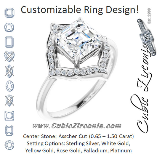 Cubic Zirconia Engagement Ring- The Casie Jean (Customizable Asscher Cut Style with Artistic Equilateral Halo and Ultra-thin Band)