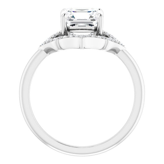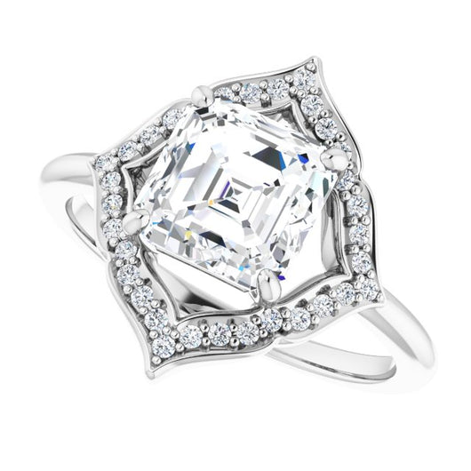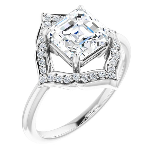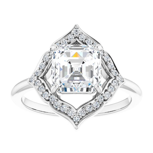 10K White Gold Customizable Asscher Cut Style with Artistic Equilateral Halo and Ultra-thin Band