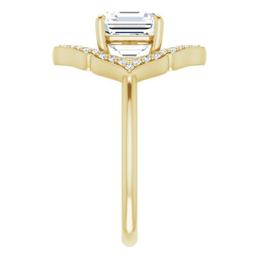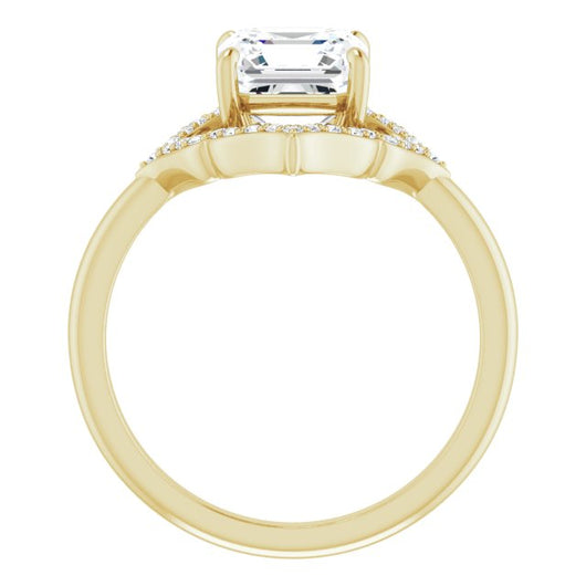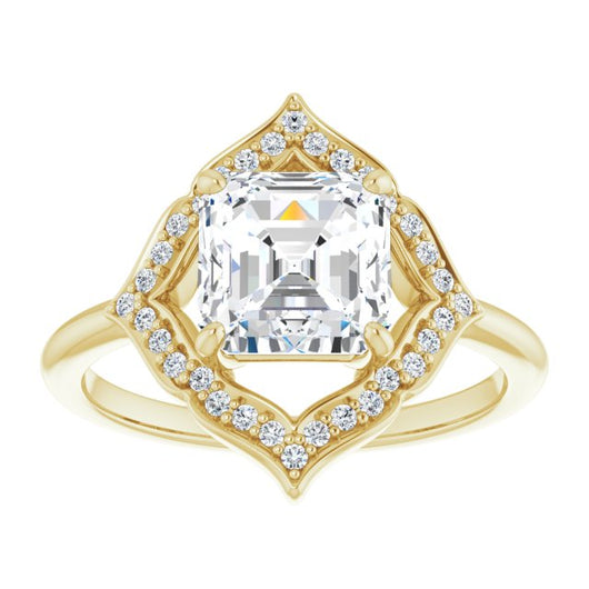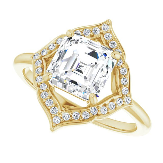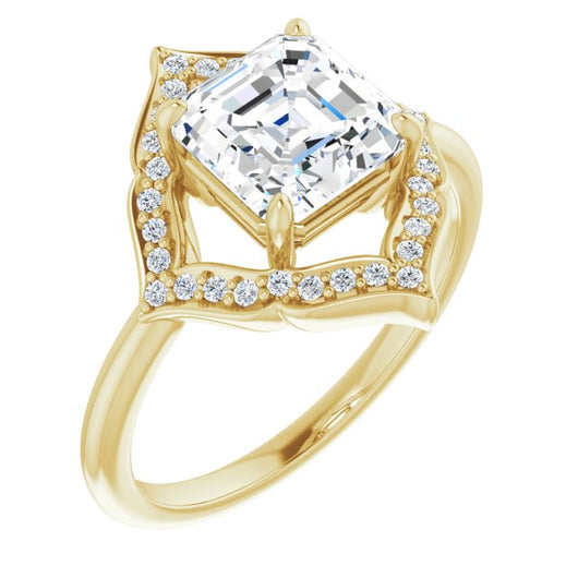 10K Yellow Gold Customizable Asscher Cut Style with Artistic Equilateral Halo and Ultra-thin Band