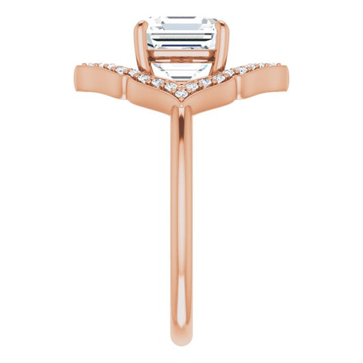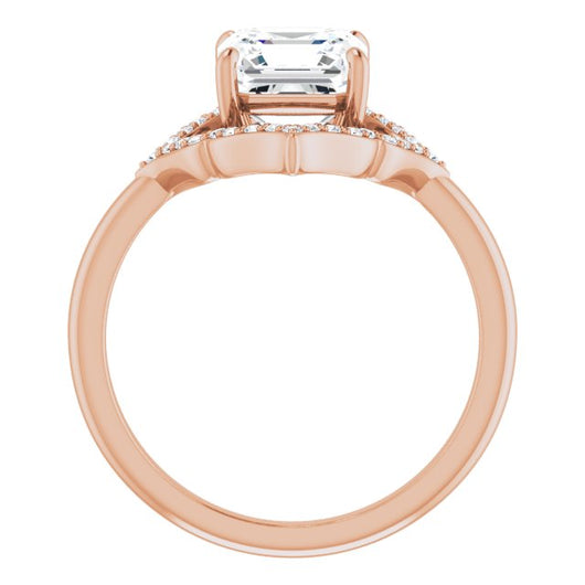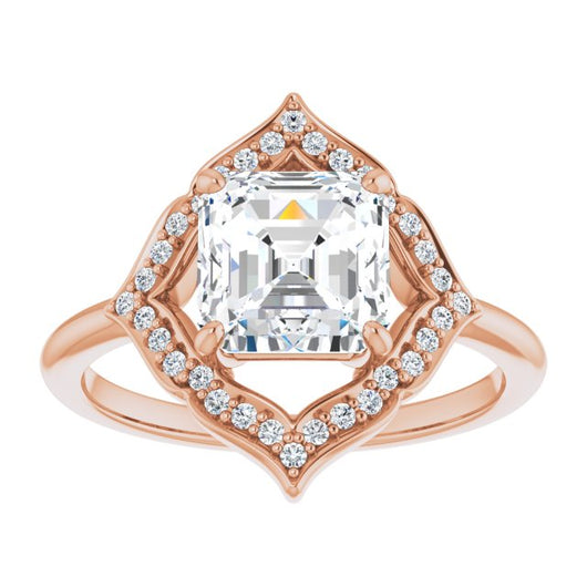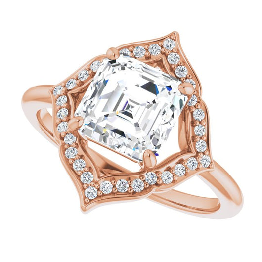 10K Rose Gold Customizable Asscher Cut Style with Artistic Equilateral Halo and Ultra-thin Band