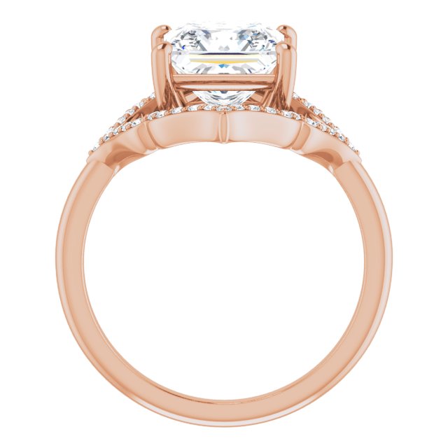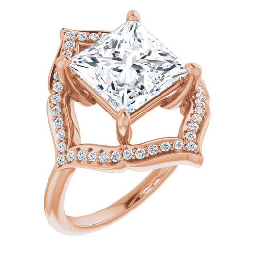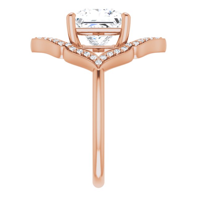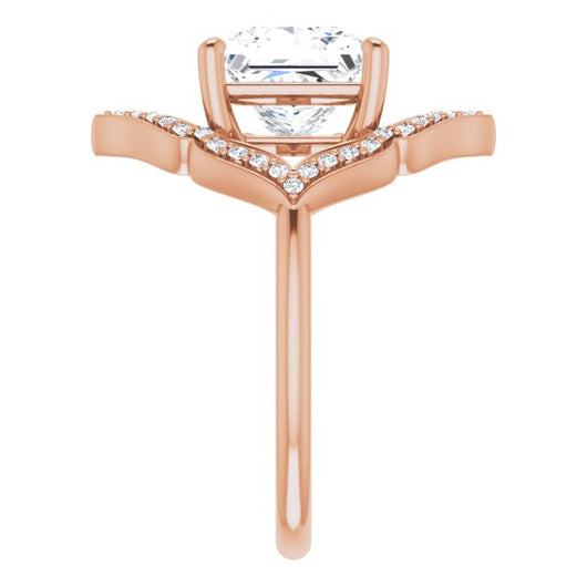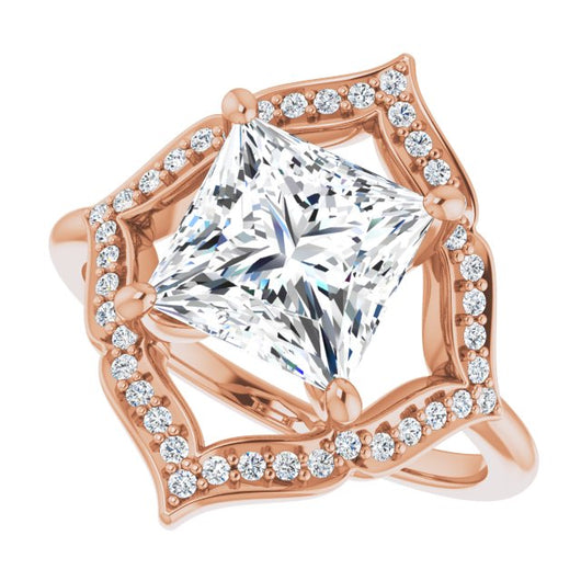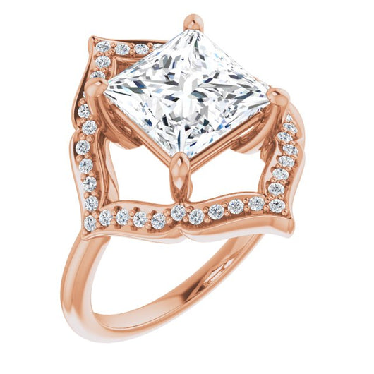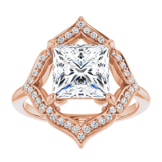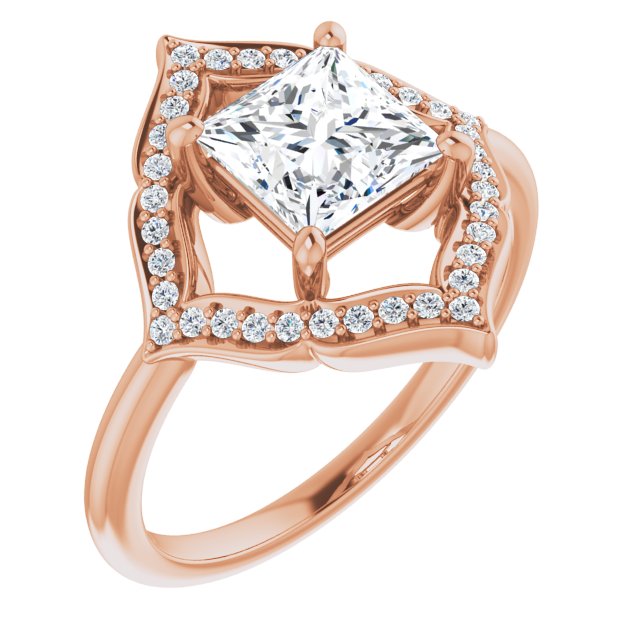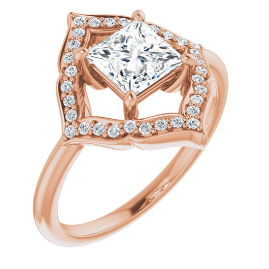 10K Rose Gold Customizable Princess/Square Cut Style with Artistic Equilateral Halo and Ultra-thin Band